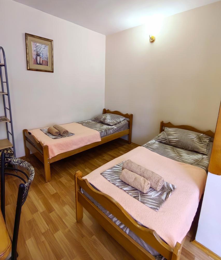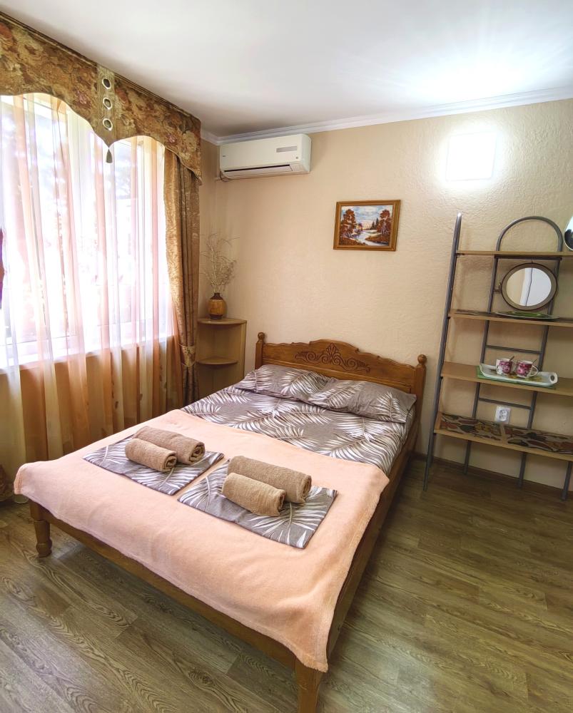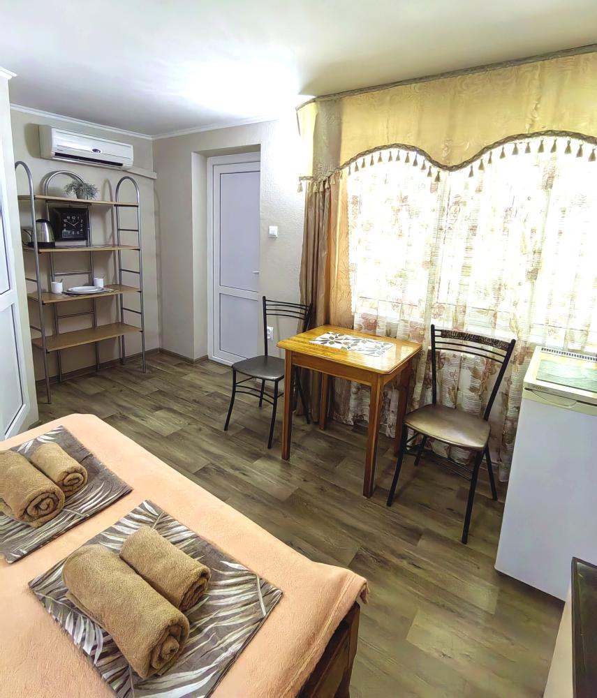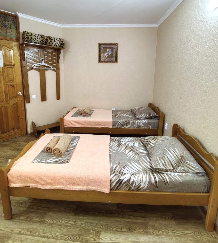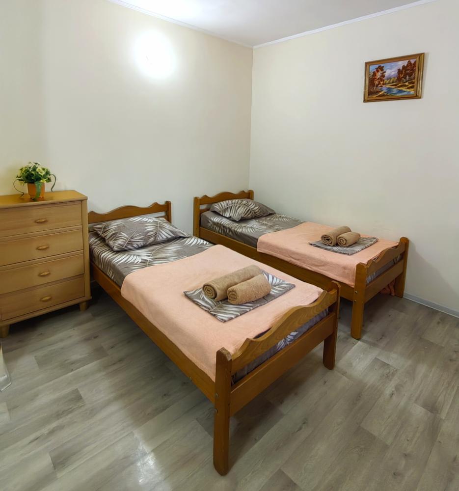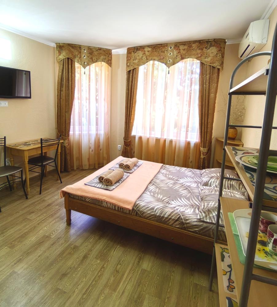 Уютный двухместный номер. Для комфортного проживания в номере телевизор, wi-fi, холодильник, кондиционер, стол, стулья, необходимая посуда. Санузел в номере. Постельное бельё, пледы и полотенца предоставляем. Чайник, гладильная доска и утюг на этаже.
