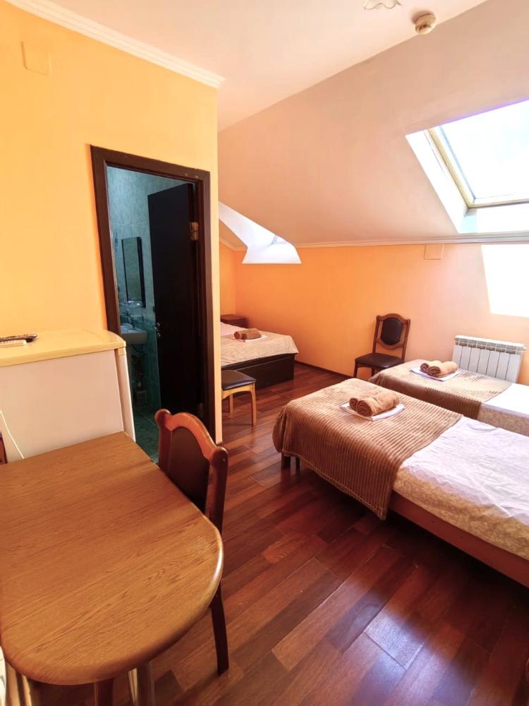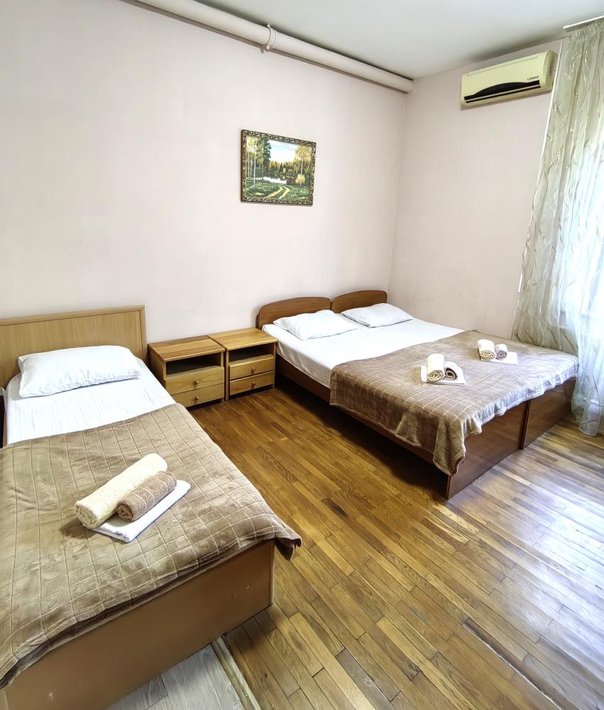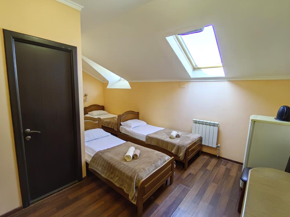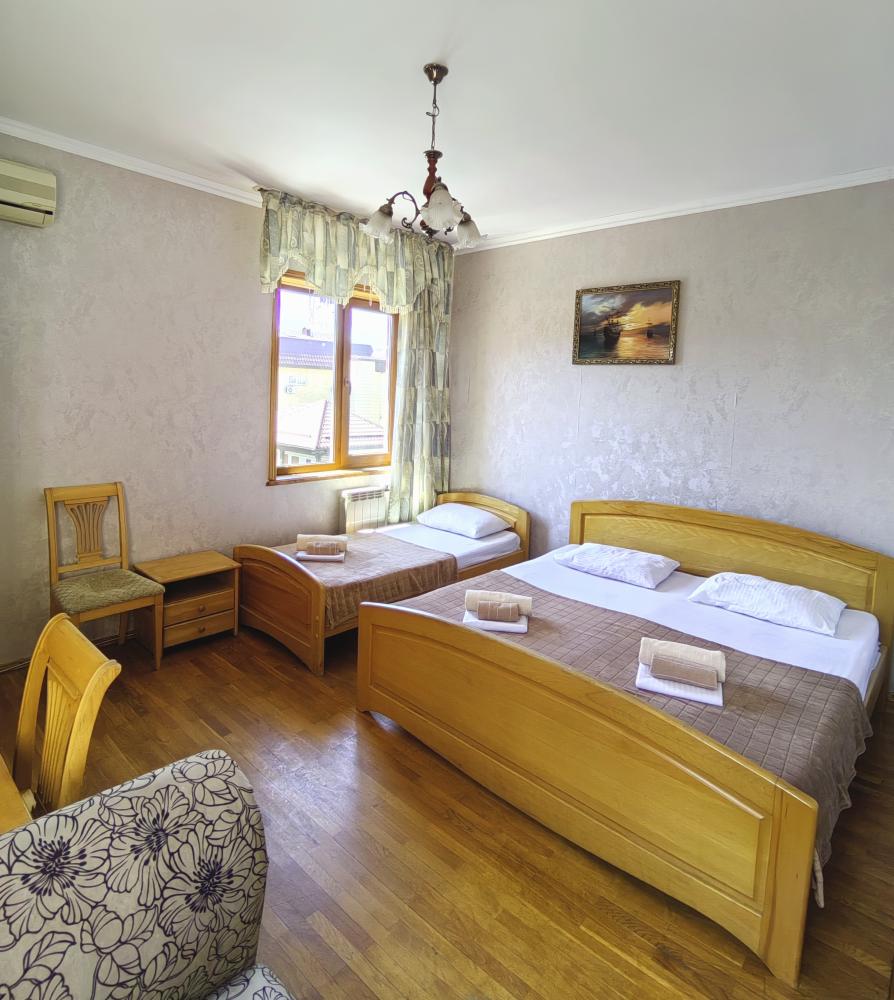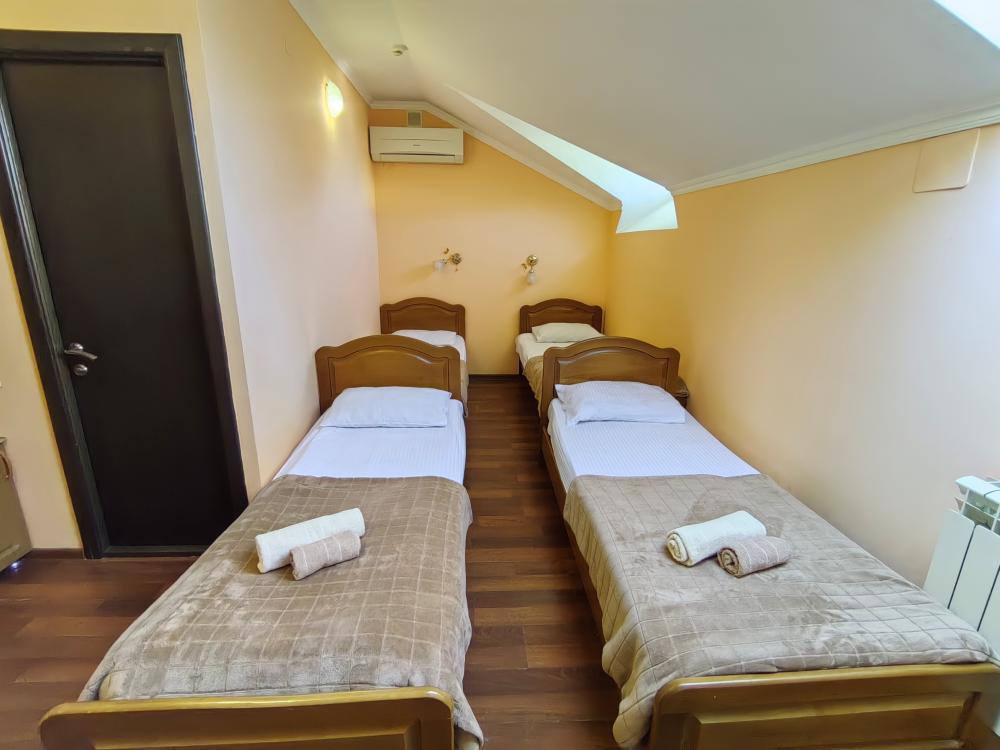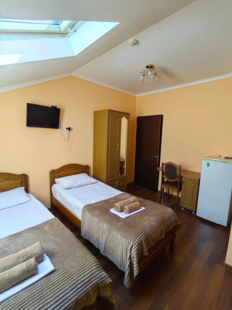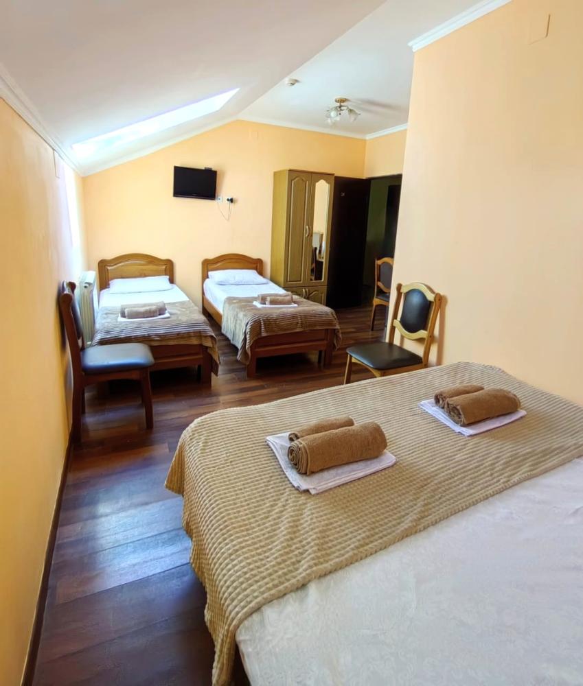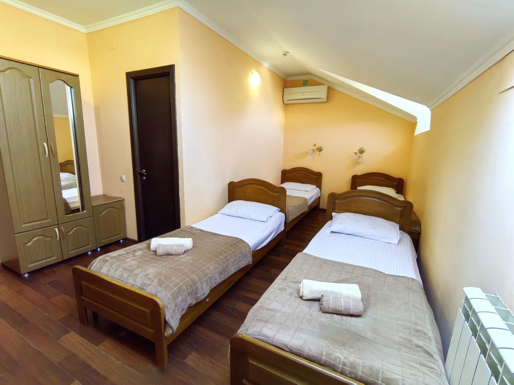 Кровати, диван, кресло-кровать, тумбочки, вешалка, шкаф, зеркало, телевизор, сплит-система, холодильник, Wi-Fi, комплект полотенец, санузел, душ.