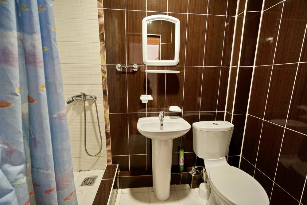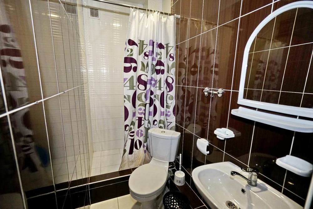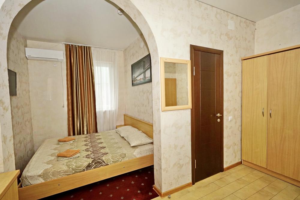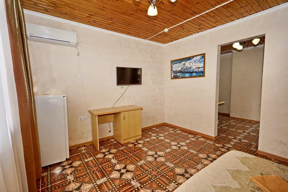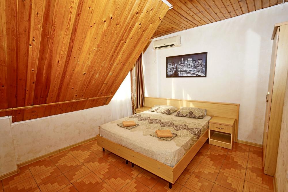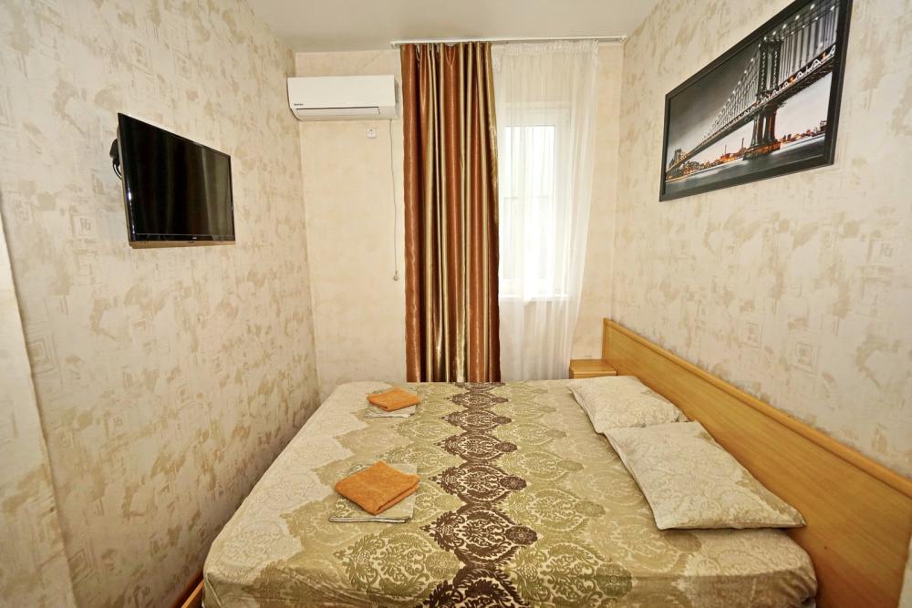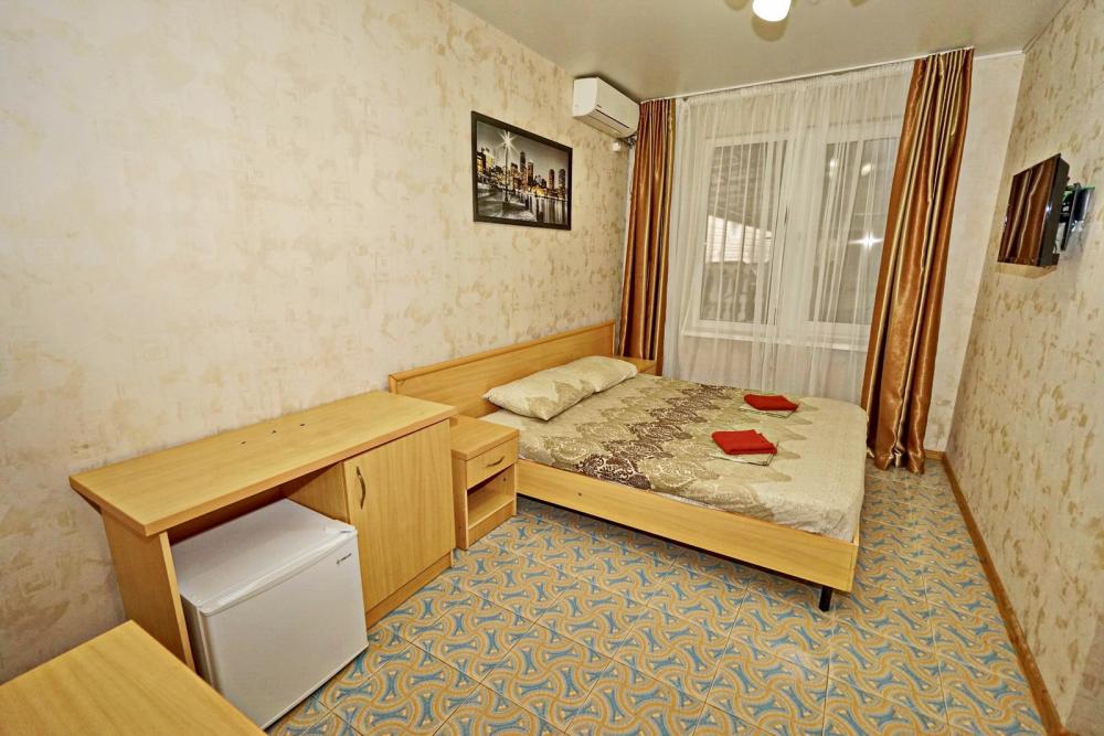 Кровать двуспальная, тумбочки, стол, прихожая, шкаф. Техника: телевизор, холодильник, кондиционер. Удобства: постельное бельё, полотенца, вешалки, спутниковое ТВ, Wi-Fi. Санузел: совмещенный в номере (душ+туалет) Дополнительное место не входит в стоимость номера. Если в номере людей будет проживать больше, чем положено, нужно оплатить дополнительные места. Оплата дополнительного места осуществляется для детей до 3х лет – 300 руб/сутки, с 3х лет стоимость предоставления доп места - 500 руб/сутки. Бесплатное проживание дополнительных гостей гостевой дом не осуществляет независимо от возраста.
