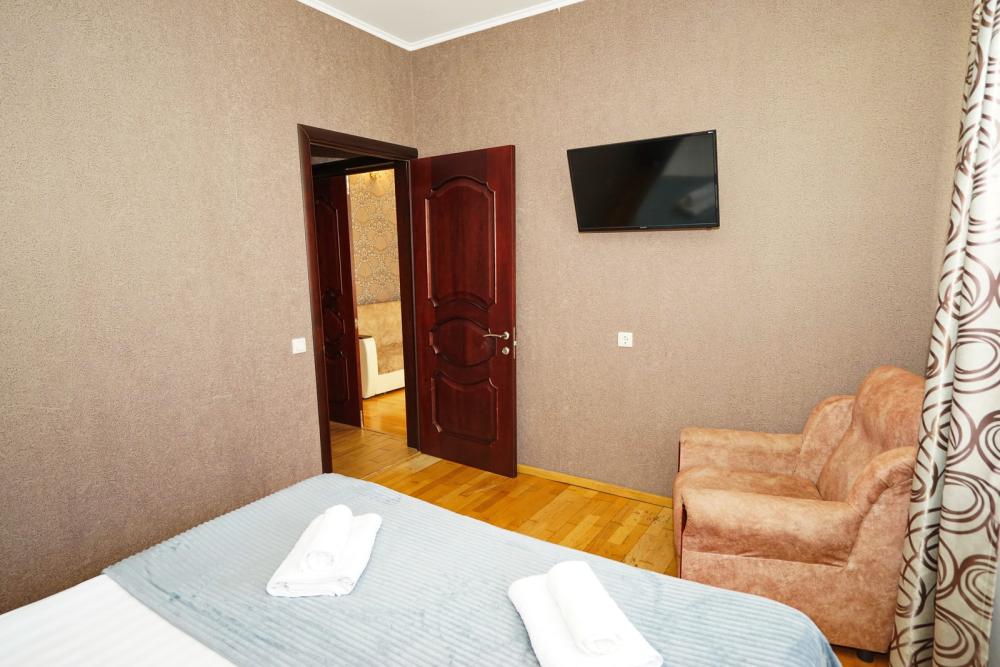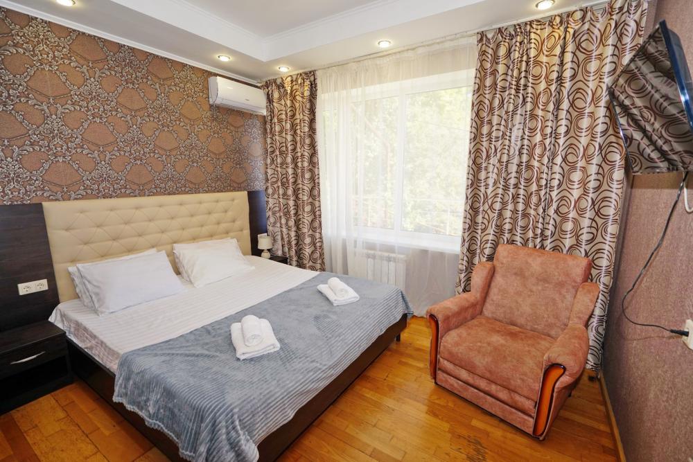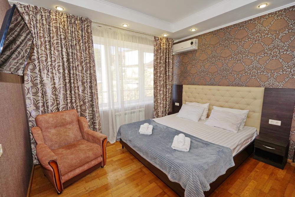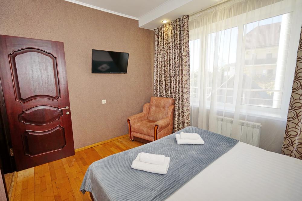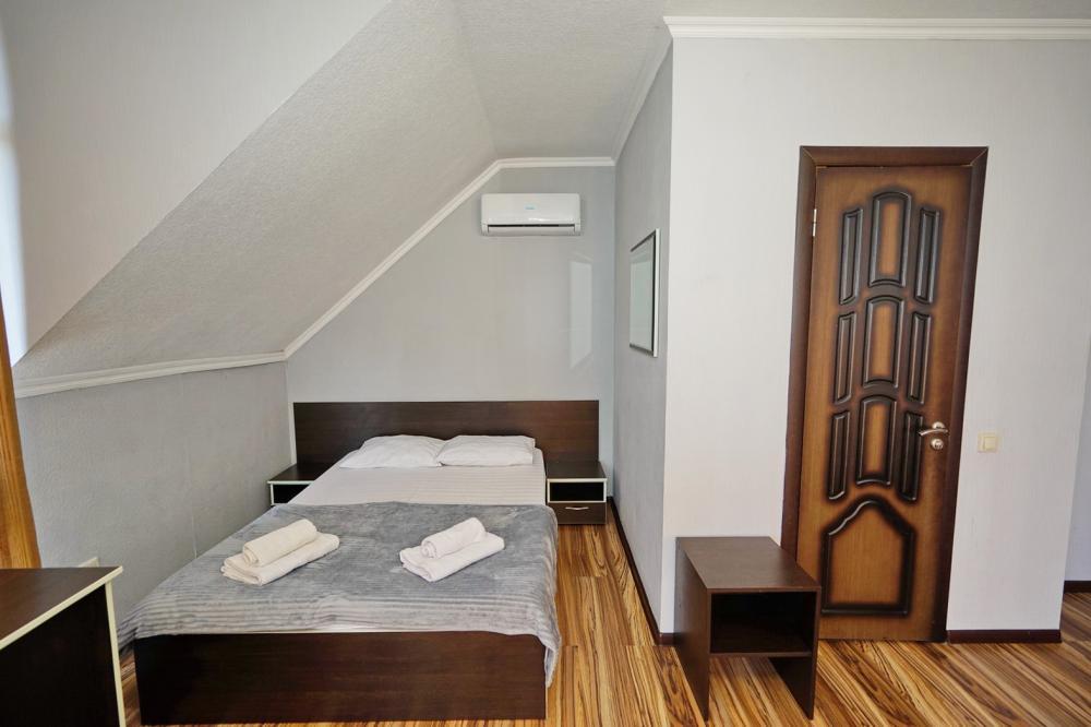 Кровать (двуспальная или две односпальные), стол/комод, стул(ья), шкаф, прикроватные тумбочки, вешалки, зеркало, кондиционер, телевизор, постельное белье, полотенца, гигиенические наборы, холодильник, санузел. Дополнительное место не входит в стоимость номера. Если в номере людей будет проживать больше, чем положено, нужно оплатить дополнительные места. Оплата дополнительного места осуществляется для детей до 3х лет – 300 руб/сутки, с 3х лет стоимость предоставления доп места - 500 руб/сутки. Бесплатное проживание дополнительных гостей гостевой дом не осуществляет независимо от возраста.