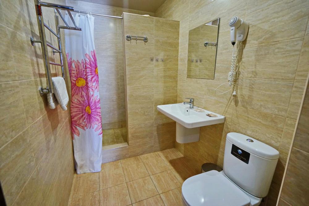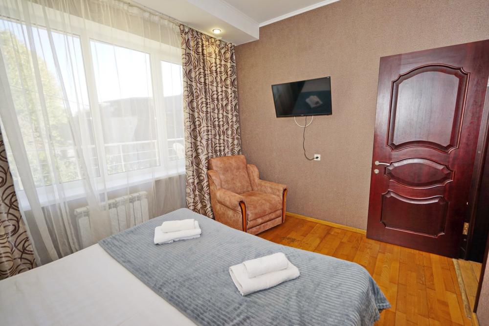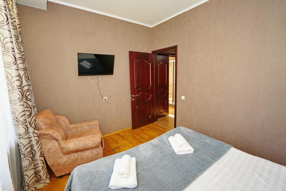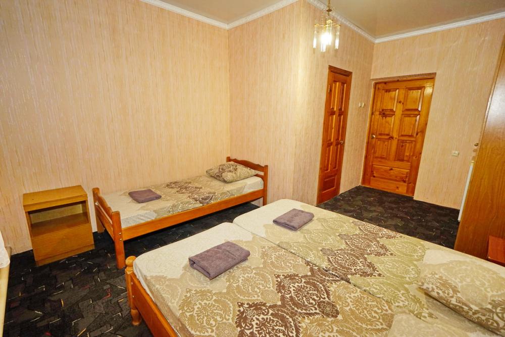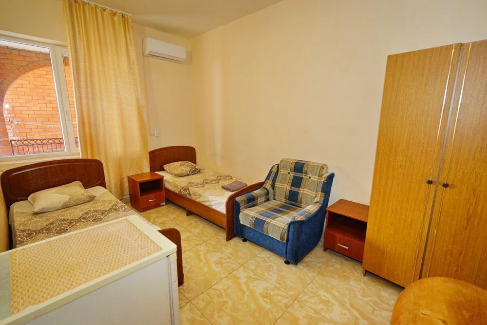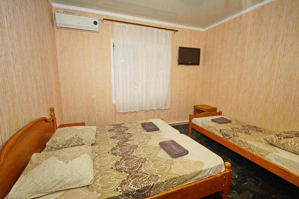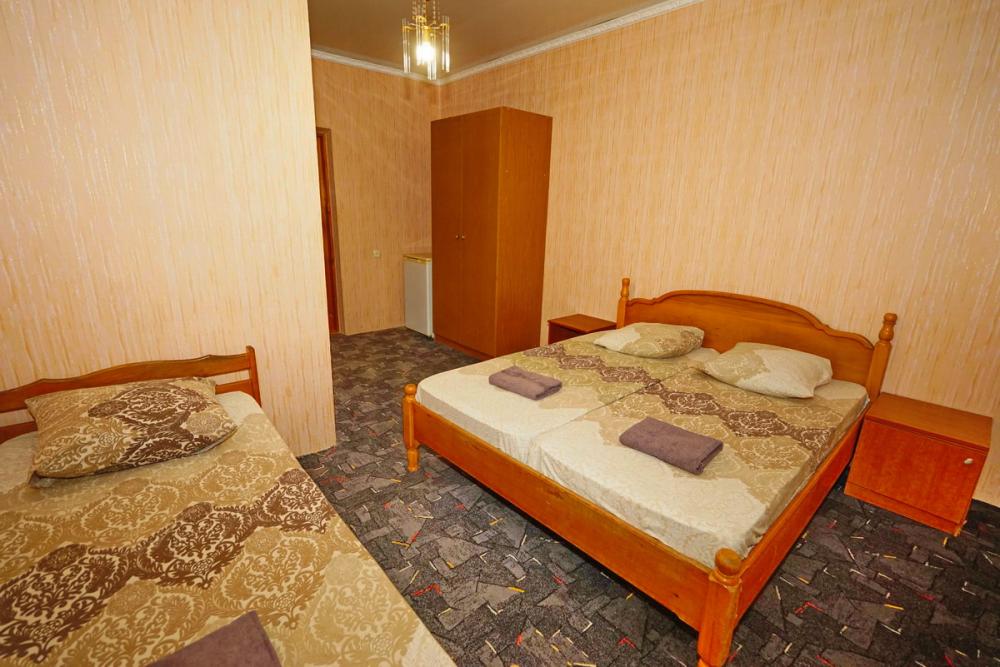 Двуспальная и односпальная кровати, стол/комод, стул(ья), шкаф, прикроватные тумбочки, вешалки, зеркало, кондиционер, телевизор, постельное белье, полотенца, гигиенические наборы, холодильник, санузел. Дополнительное место не входит в стоимость номера. Если в номере людей будет проживать больше, чем положено, нужно оплатить дополнительные места. Оплата дополнительного места осуществляется для детей до 3х лет – 300 руб/сутки, с 3х лет стоимость предоставления доп места - 500 руб/сутки. Бесплатное проживание дополнительных гостей гостевой дом не осуществляет независимо от возраста.