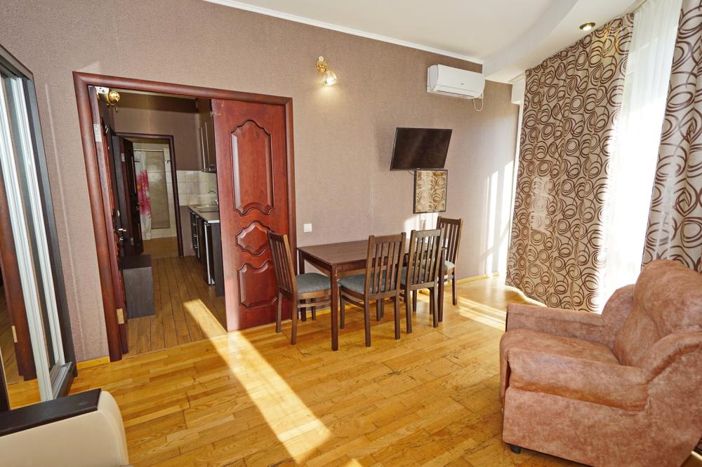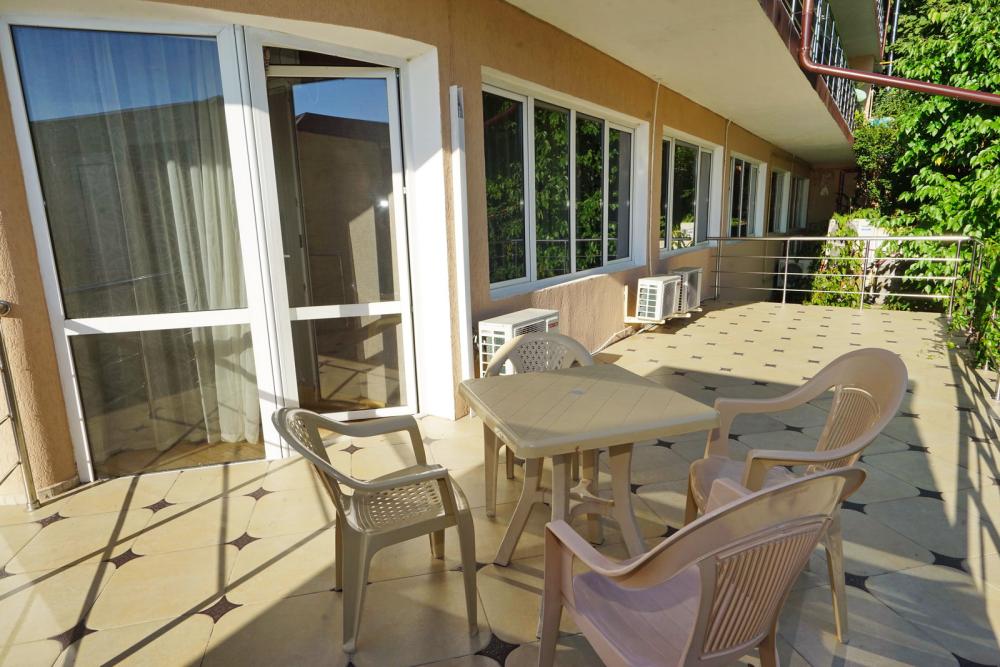 Двуспальная и односпальная кровати или двуспальная кровать и двуспальный диван, стол/комод, стул(ья), шкаф, прикроватные тумбочки, вешалки, зеркало, кондиционер, телевизор, постельное белье, полотенца, гигиенические наборы, кухня с необходимым инвентарем для приготовления пищи, чайник, микроволновка, мультиварка, холодильник, санузел. Стоимость указана в прайсе за проживание 4-х человек. Дополнительное место не входит в стоимость номера. Если в номере людей будет проживать больше, чем положено, нужно оплатить дополнительные места. Оплата дополнительного места осуществляется для детей до 3х лет – 300 руб/сутки, с 3х лет стоимость предоставления доп места - 500 руб/сутки. Бесплатное проживание дополнительных гостей гостевой дом не осуществляет независимо от возраста.