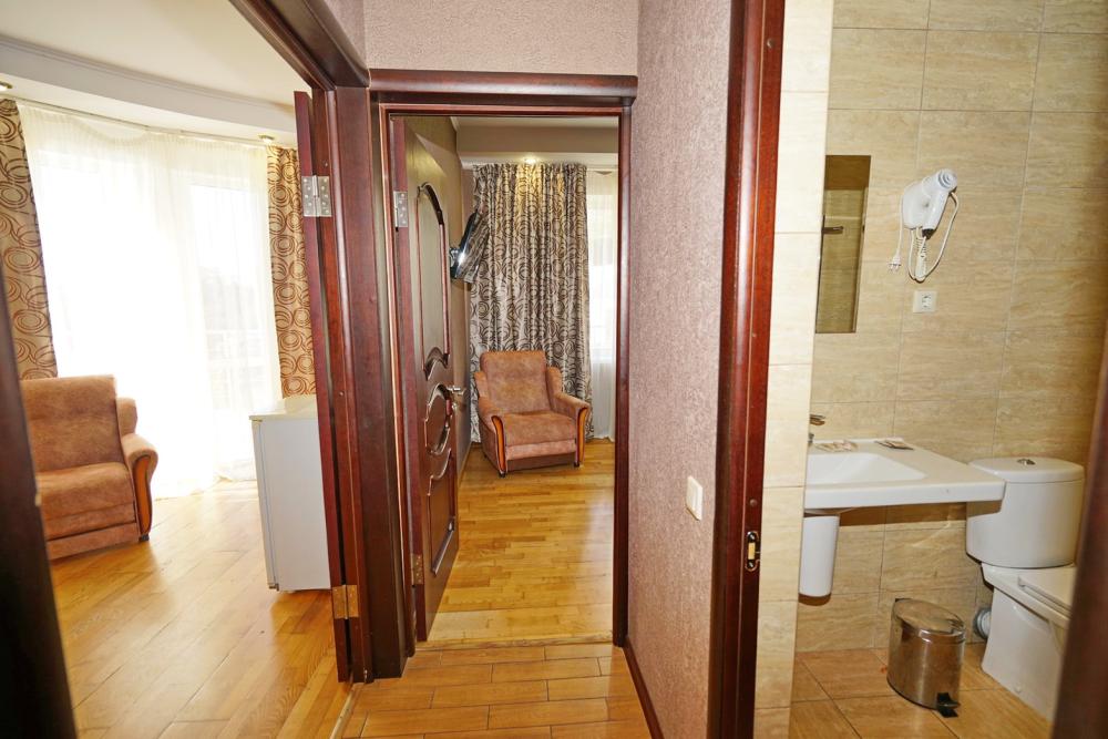 Кровать двуспальная и односпальная кровати, стол/комод, стул(ья), шкаф, прикроватные тумбочки, вешалки, зеркало, кондиционер, телевизор, постельное белье, полотенца, гигиенические наборы, холодильник, санузел. Дополнительное место не входит в стоимость номера. Если в номере людей будет проживать больше, чем положено, нужно оплатить дополнительные места. Оплата дополнительного места осуществляется для детей до 3х лет – 300 руб/сутки, с 3х лет стоимость предоставления доп места - 500 руб/сутки. Бесплатное проживание дополнительных гостей гостевой дом не осуществляет независимо от возраста.