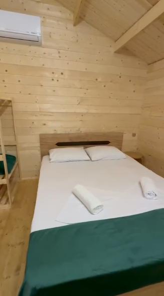 Всего 3 новых домика. В каждом домике по 2 номера с отдельными входами и удобствами. В каждом номере двуспальная кровать, диван-кровать, шкаф, прикроватные тумбочки, комод, вешалка, зеркало, сплит-система, телевизор в каждом номере, ТВ, интернет, мини-холодильник. Комфортное проживание: 2 взрослых + 2 детей.