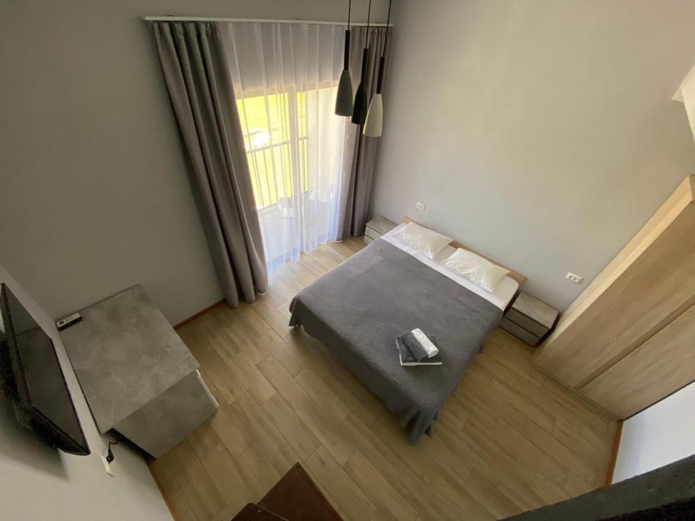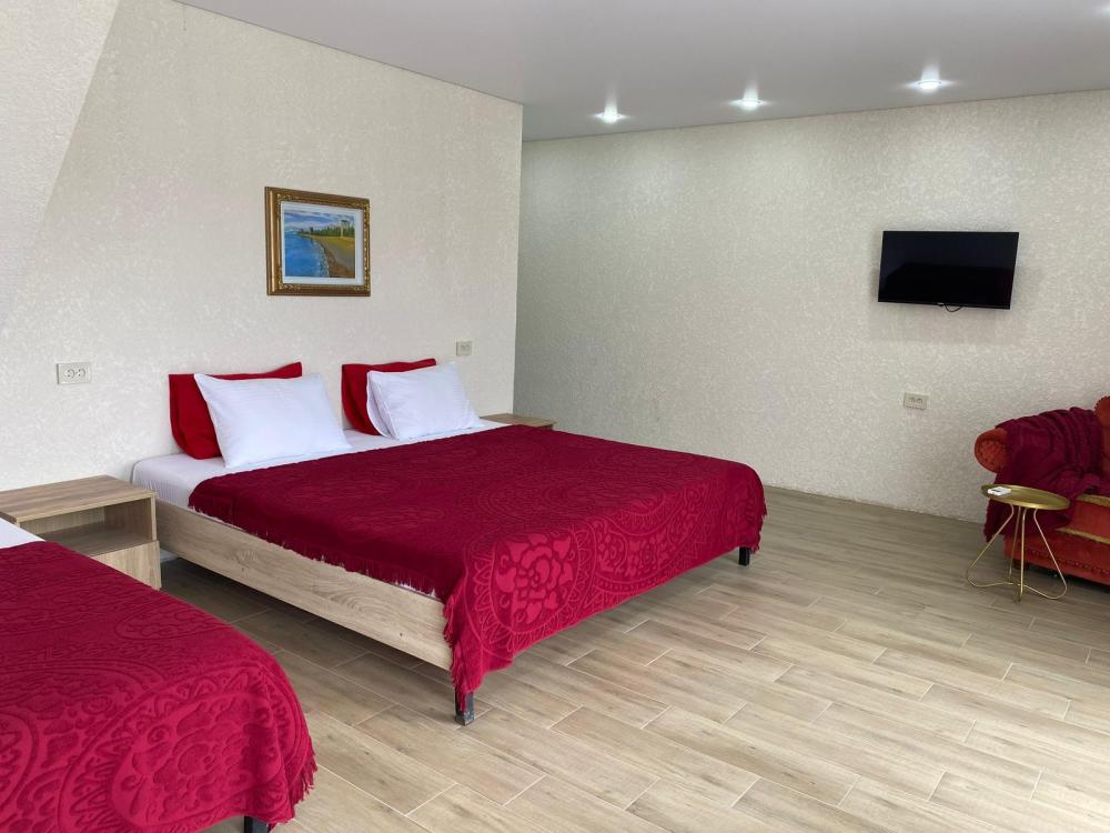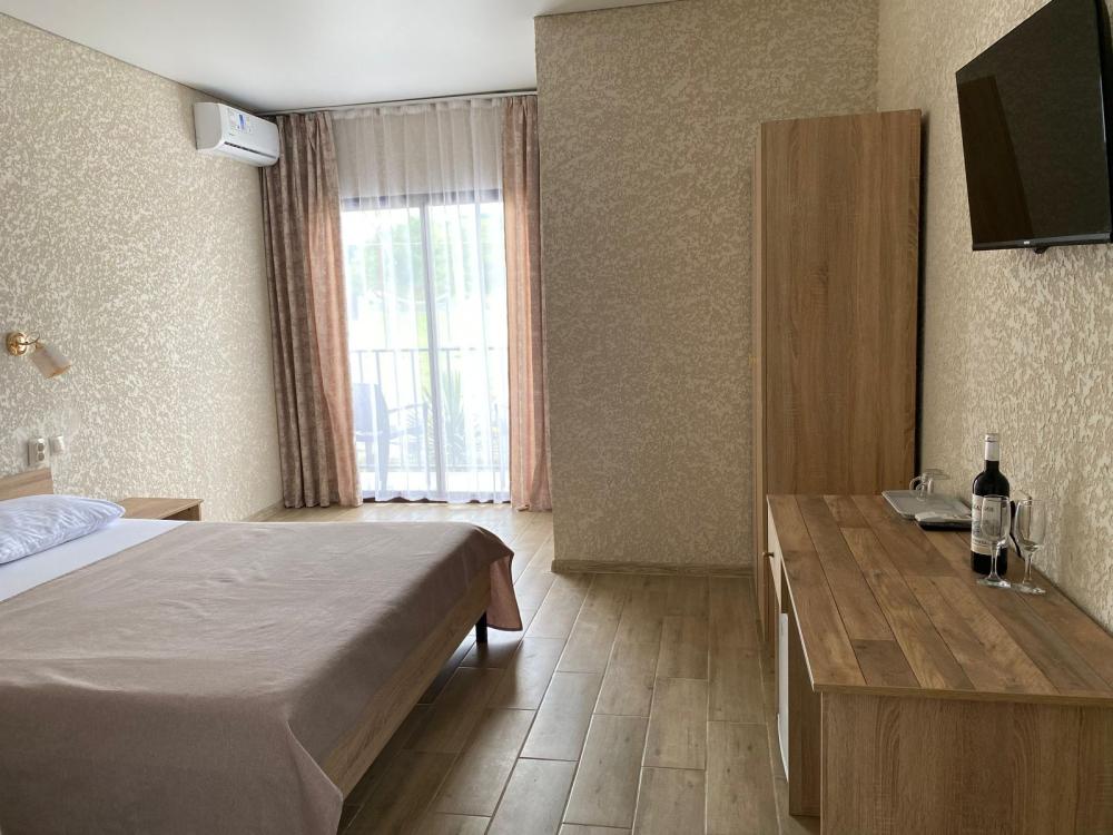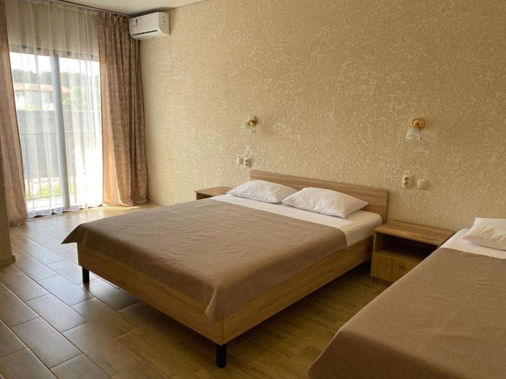 Всего 1 номер на 3 этаже, панорамные выходы на 2 балкона, откуда открывается вид на сосны (морская сторона)