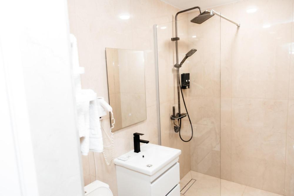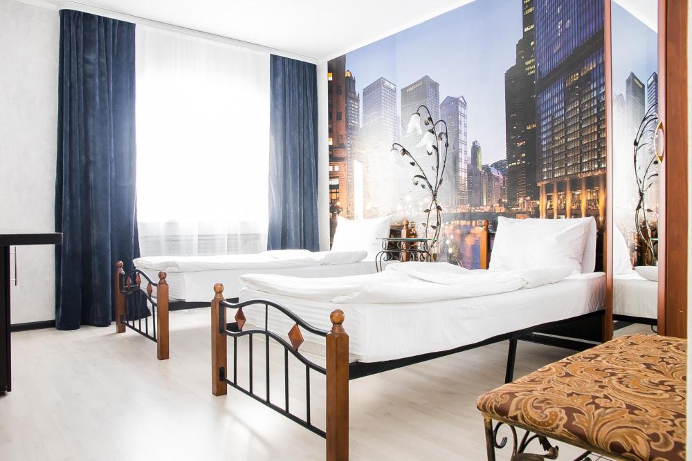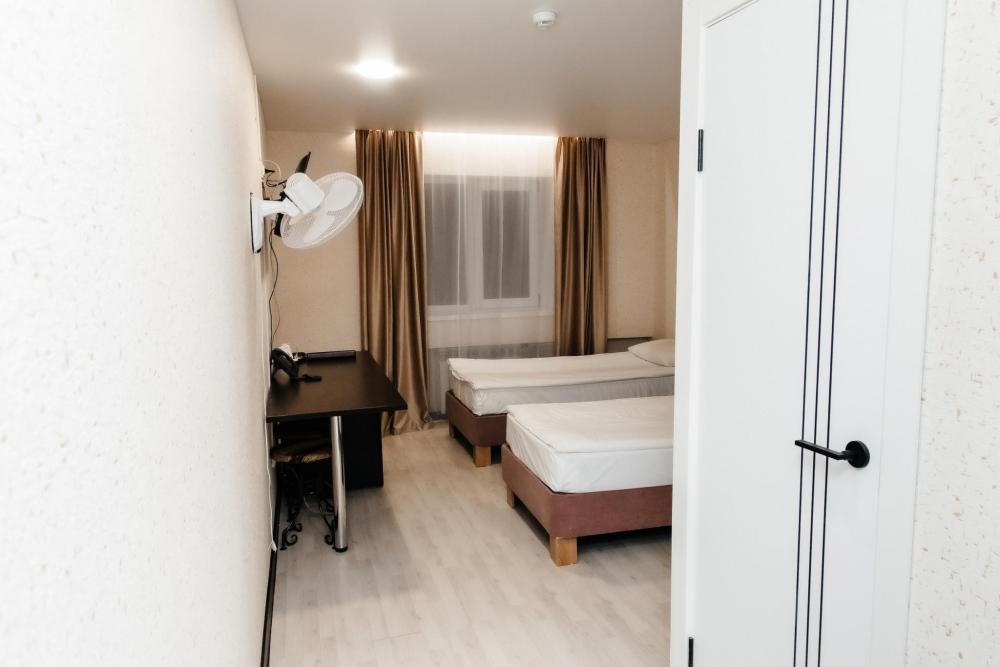 Эти номера площадью 15-20 кв.м., представляют собой комнату меньшей площадью и с двумя отдельными кроватями. Элегантные двухместные номера отличаются повышенной комфортабельностью и вмещают в себя все, что необходимо для вашего отдыха. В основном пользуются популярностью у командировочных гостей, т.к. цена очень приемлема. В комнате имеется холодильник, телевизор, санузел, душевая, вентилятор. Это номера 6,7,8,9,12,13.