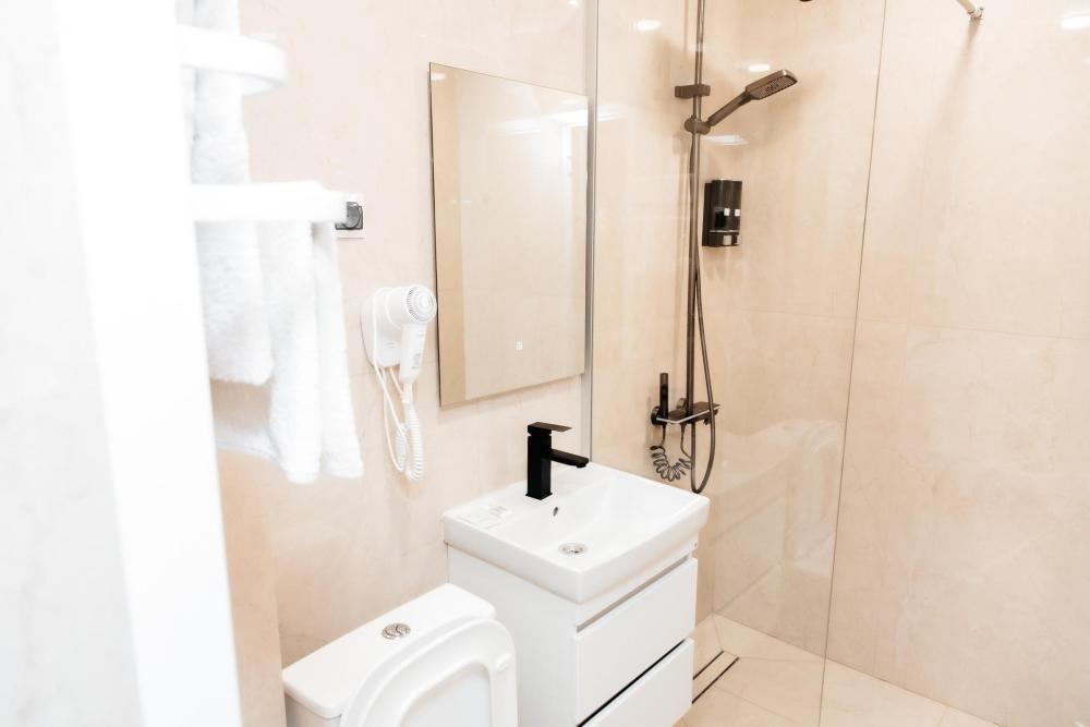 Стандарт первой категории одноместный представляет собой уютный небольшой номер с одной кроватью. Прекрасный комфортабельный номер, оснащенный всем необходимым для отдыха: телевизор, холодильник, вентилятор, санузел, душевая комната, прикроватная тумба.