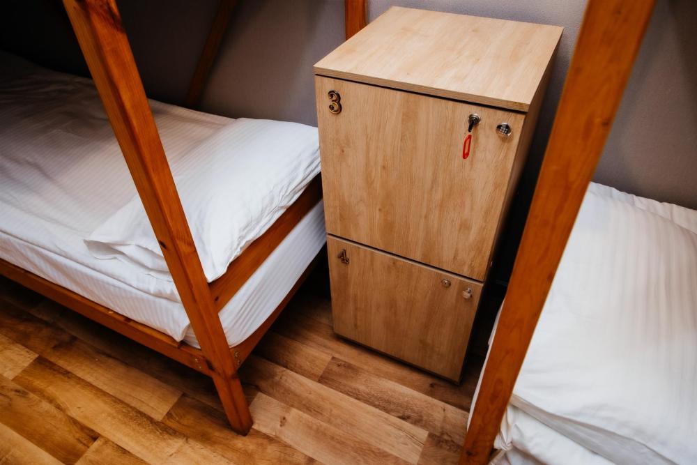 Однокомнатный номер, площадью 20 кв.м. В номере 4 двухъярусные кровати, индивидуальные шкафчики и ящики, телевизор.