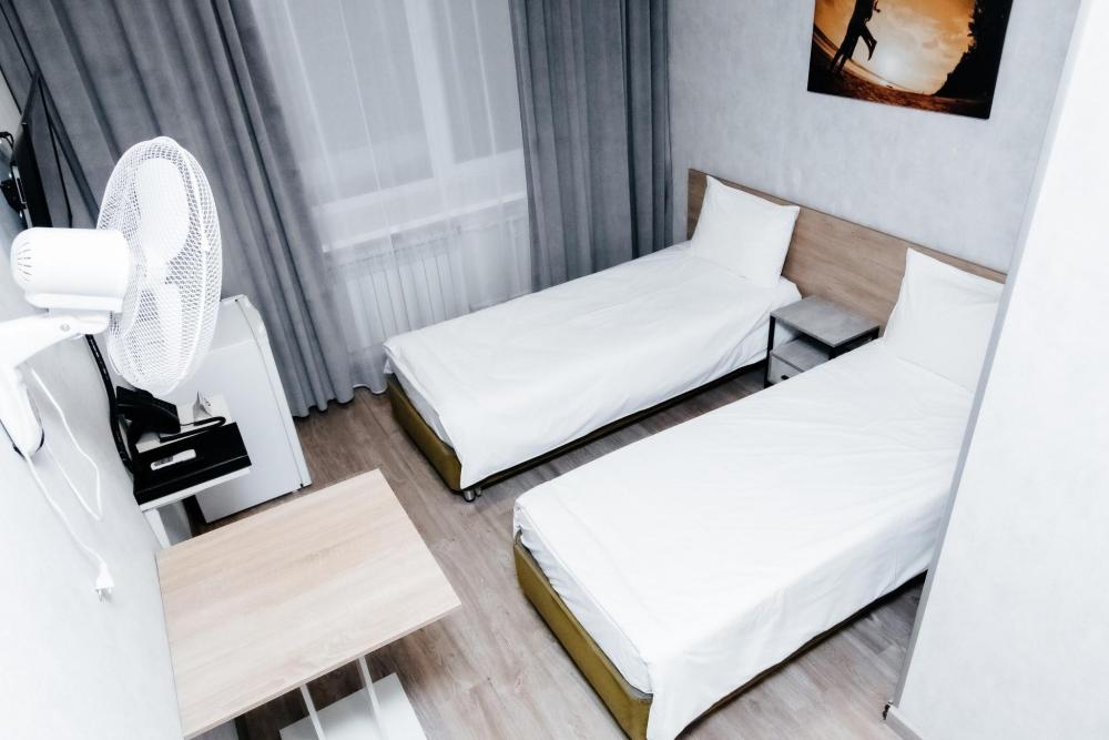Однокомнатный номер, площадью 20 кв.м. В номере: две раздельные односпальные кровати, плазменный телевизор СМАРТ-тв, шкаф, письменный стол, тумба, кондиционер, все удобства в номере (душ, гигиенический душ, раковина, санузел, зеркало, фен).
