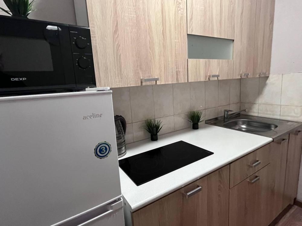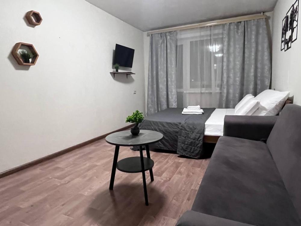 Однокомнатная квартира. Есть вся необходимая мебель, посуда, бытовая техника, Wi-Fi. Двуспальная кровать (160 см ширина), и двуспальный диван. Постельные принадлежности, полотенца.