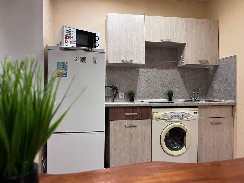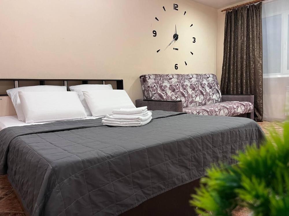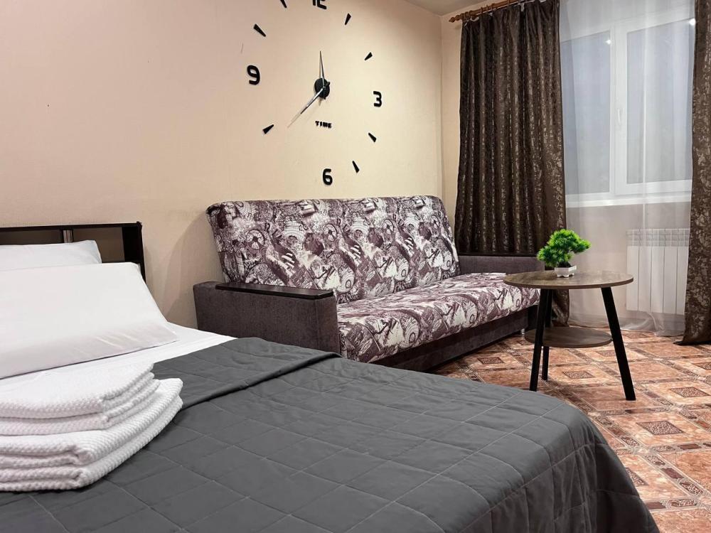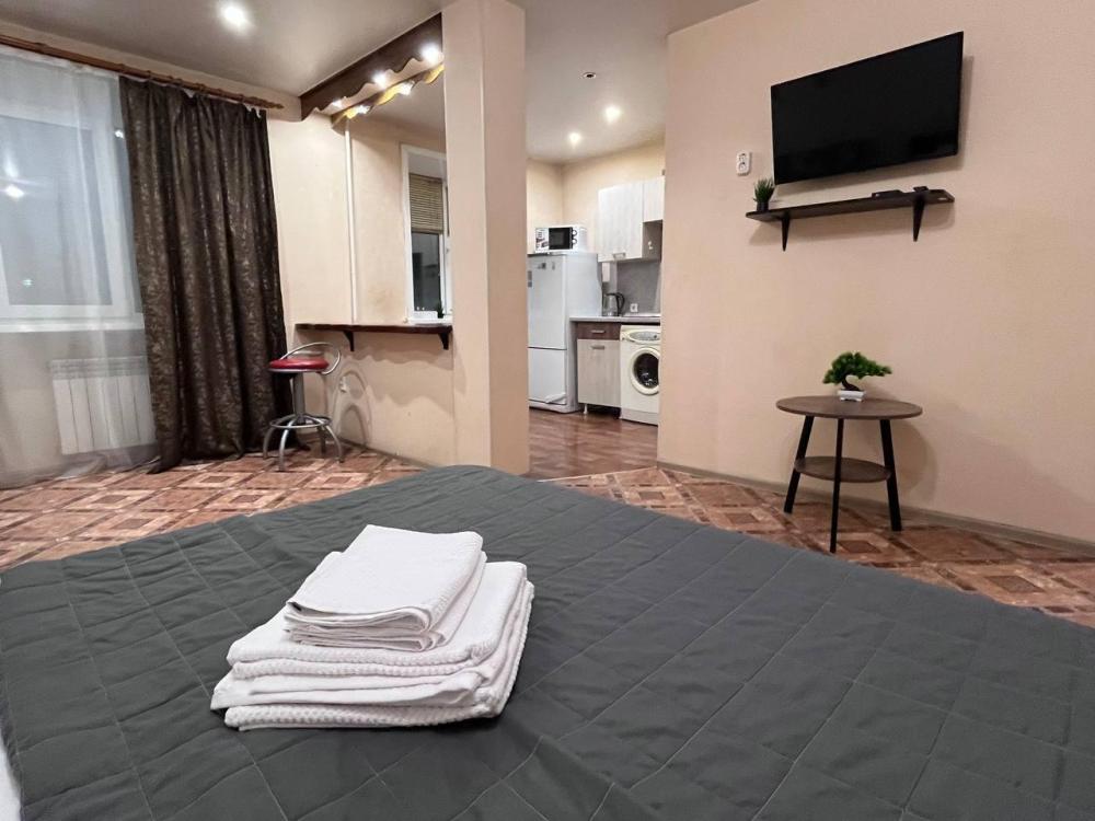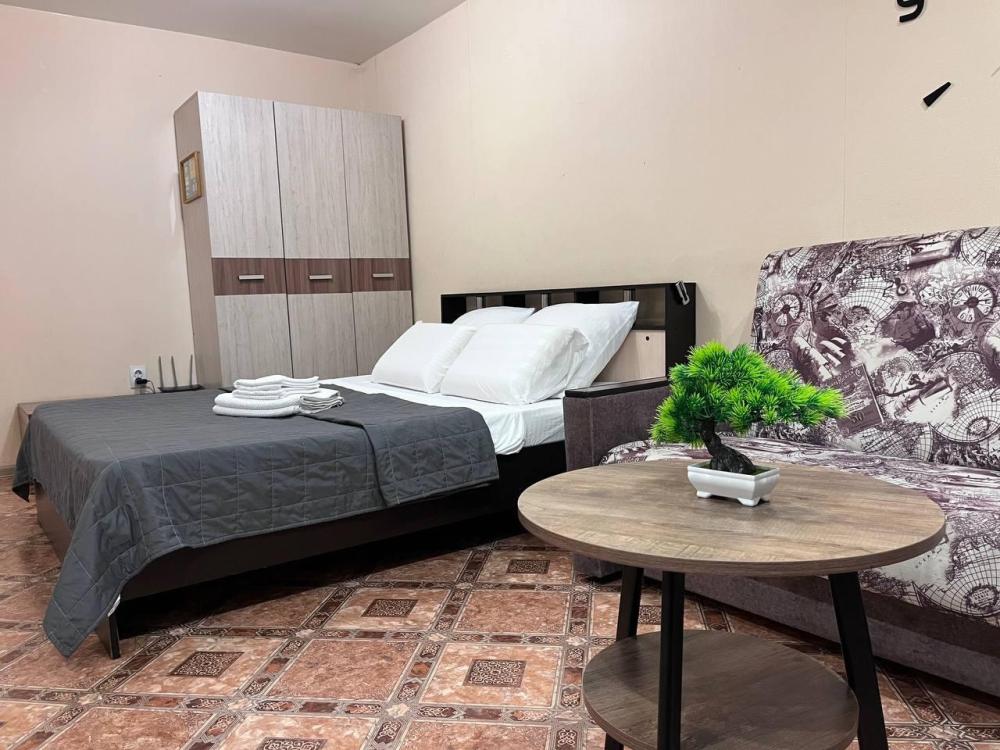 Однокомнатная квартира. Есть вся необходимая мебель, посуда, бытовая техника, Wi-Fi. Двуспальная кровать (160 см ширина), и двуспальный диван. Постельные принадлежности, полотенца.