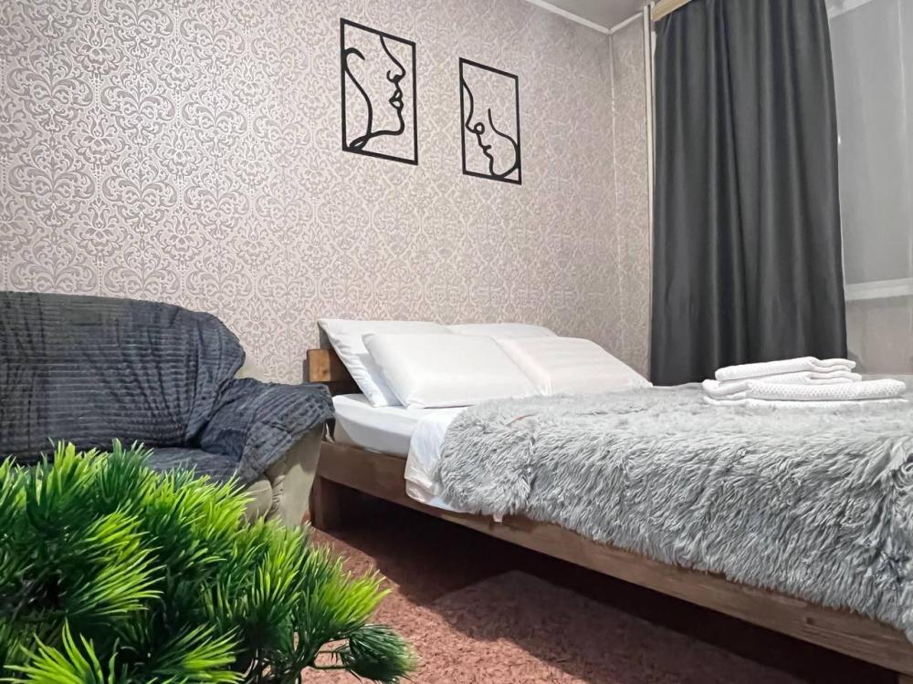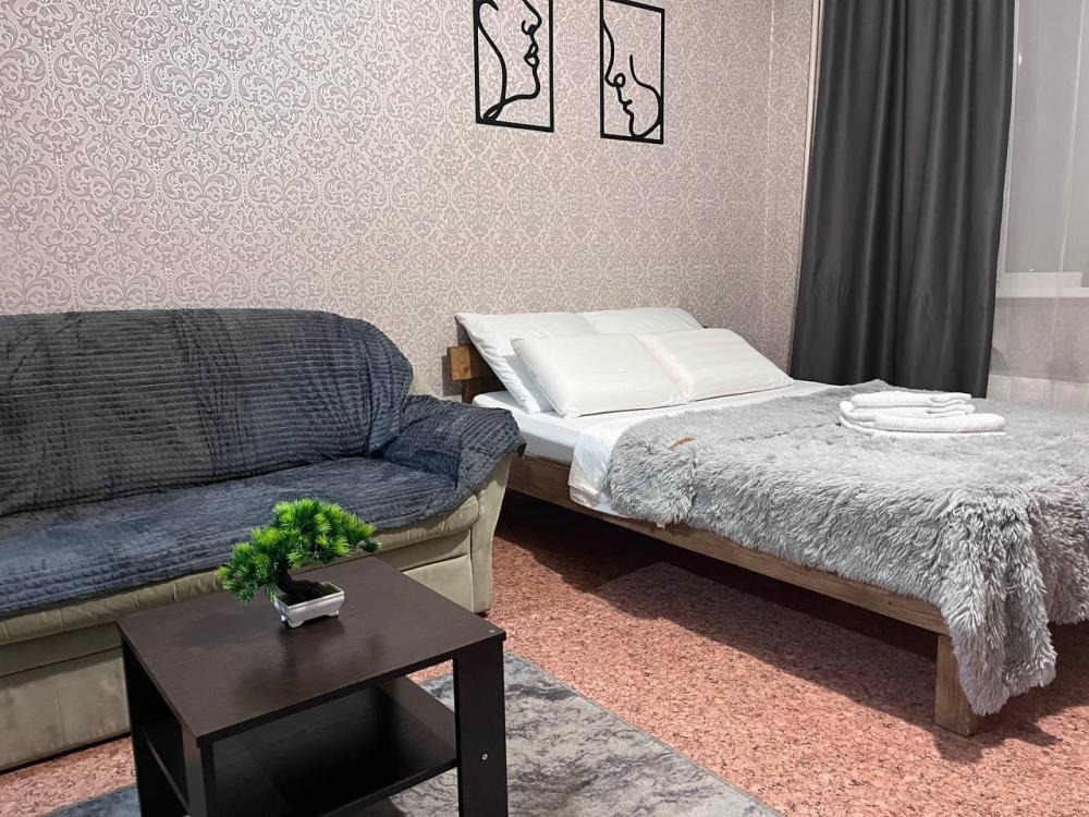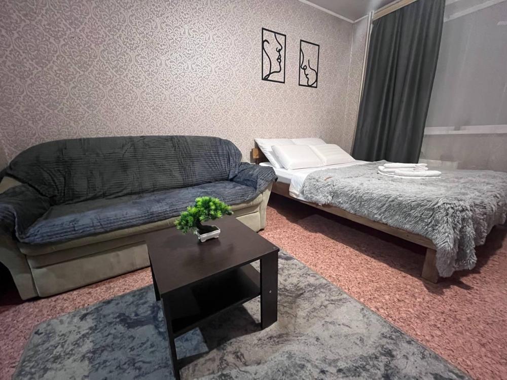 Однокомнатная квартира. Есть вся необходимая мебель, посуда, бытовая техника, Wi-Fi. Двуспальная кровать (140 см ширина), Односпальная кровать и двуспальный диван. Постельные принадлежности, полотенца.