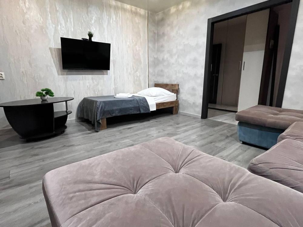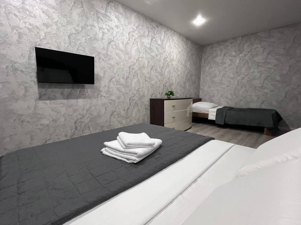 Двухкомнатная квартира. Есть вся необходимая мебель, посуда, бытовая техника, Wi-Fi. Двуспальная кровать, две односпальные кровати и двуспальный диван. Постельные принадлежности, полотенца.