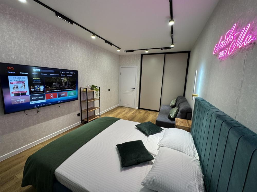1-комнатные апартаменты улучшенные Полностью с мебелью, бытовой техникой. Два отдельных спальных места, два смарт тв, два кондиционера, посуда, средства гигиены и прочее.