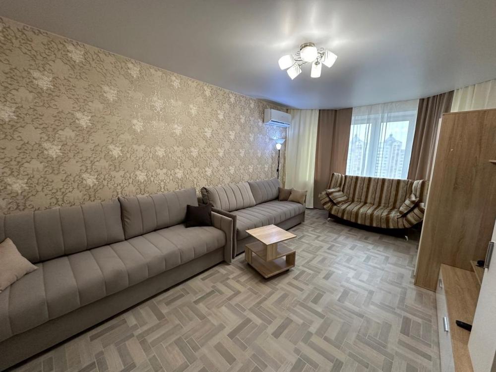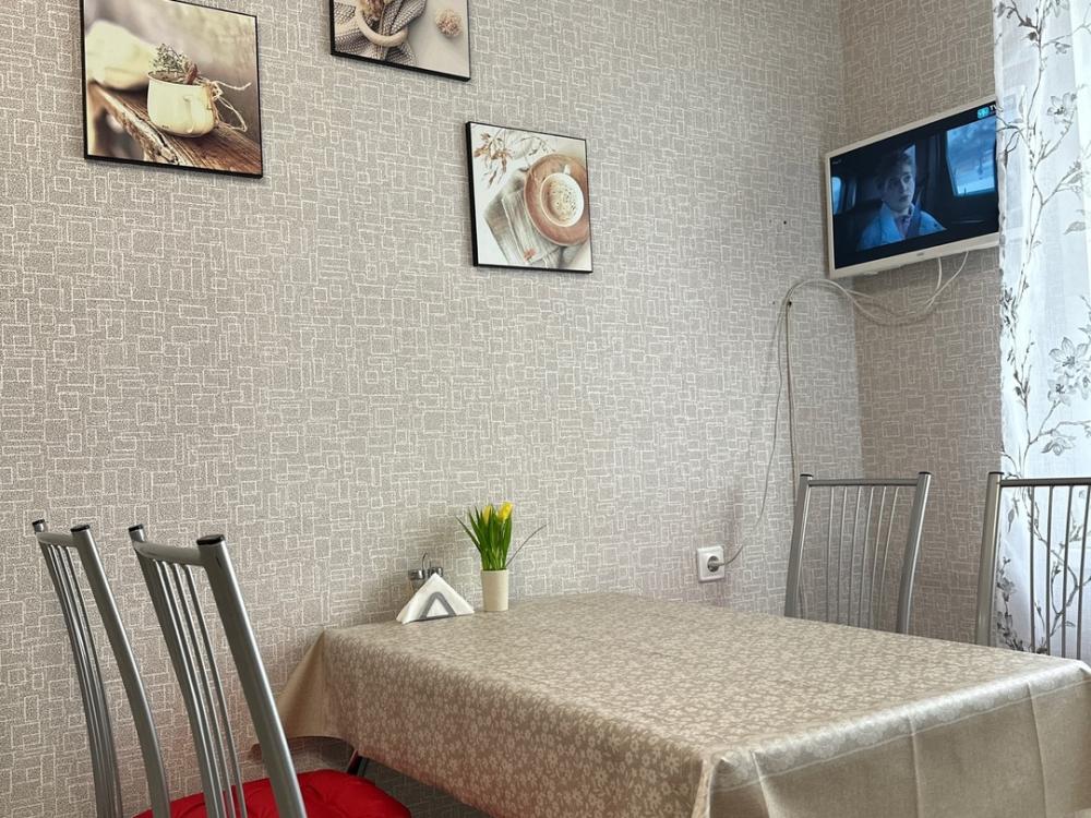 Выполнен современный ремонт, установлена удобная мебель: двухспальная кровать, четыре дивана, смарт-телевизор в зале, тв в спальне и на кухне, кондиционер, стиральная машина, микроволновая печь, фен и утюг. Есть уютный балкончик. Для детей есть детская кроватка, стульчик для кормления. Квартира полностью укомплектована всей необходимой посудой, средствами гигиены, полотенцами и постельным бельём. После каждого гостя проводится уборка. Постельное белье и полотенца стираются в прачечной. Wi-Fi.