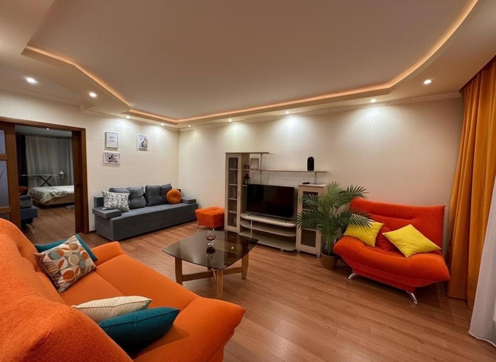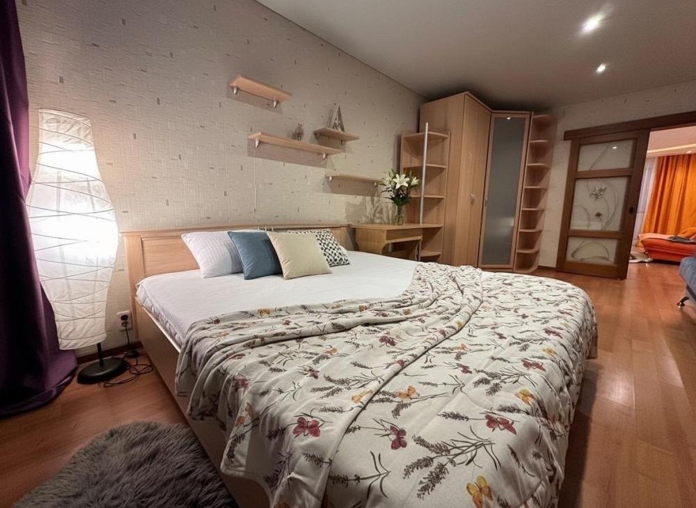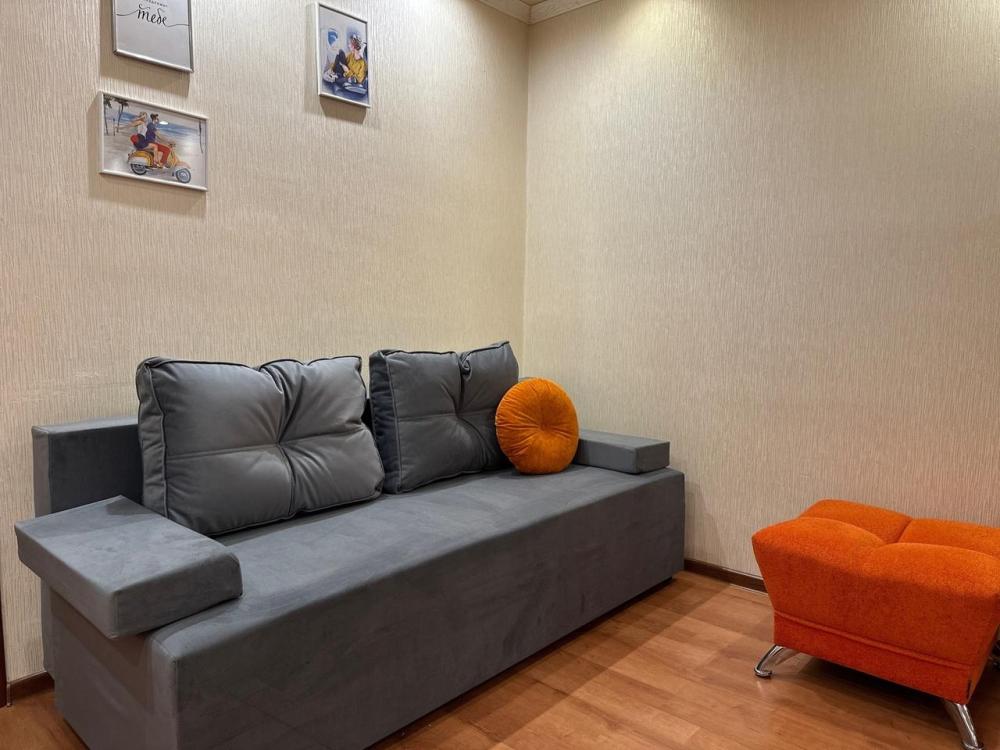 Уютная 1 ком. квартира на 27 микрорайоне, мебелированная, есть два спальных места (двуспальная кровать 2*160 и большой удобный раскладывающийся диван с независимыми пружинами 2*160 ) с бытовой техникой (плазменный большой тв, стиральная машина, холодильник, микроволновая печь, водонагреватель, элекрич. чайник, утюг, фен, кондиционер).Есть посуда, постельное белье, средства гигиены, и чай. Большой балкон из кухни. Уборка после каждого гостя, всегда чистое белье и полотенца. WI-FI-безлимитный интернет и кабельное TV со множеством различных каналов.