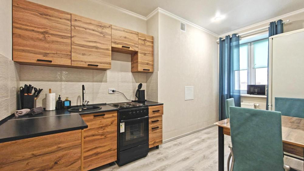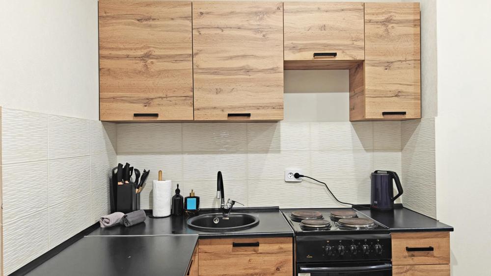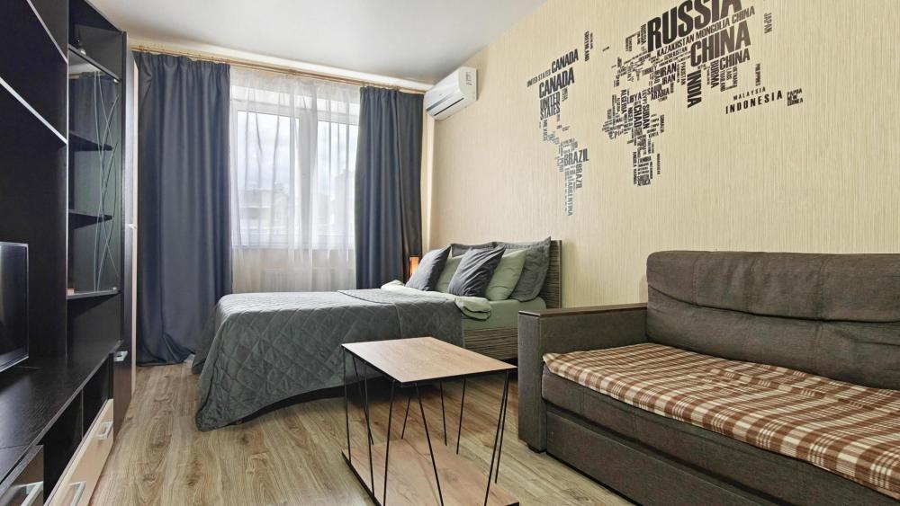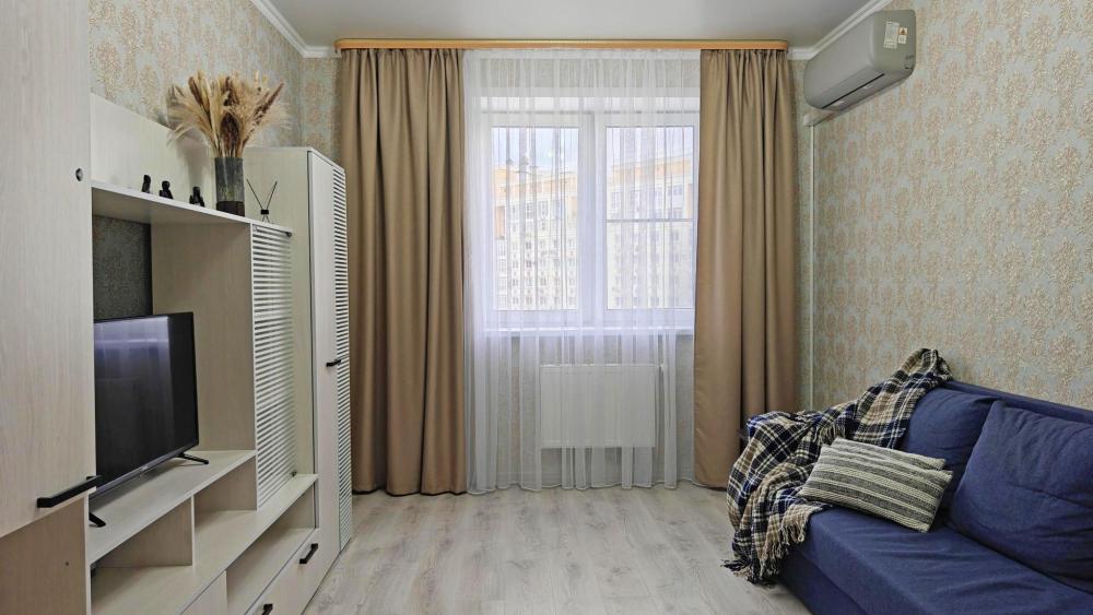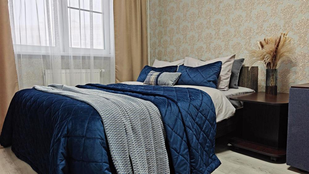 Уютная однокомнатная квартира в доме повышенной комфортности с огороженной территорией. Сделан красивый дизайнерский ремонт для удобного и комфортного проживания. Удобное спальное место: двуспальная кровать с ортопедическим основанием + диван. В распоряжении гостей: телевизор, Wi-Fi, кондиционер, холодильник, кухонная плита, микроволновая печь, стиральная машина, ванна/душ, водонагреватель, полотенца и постельное белье.