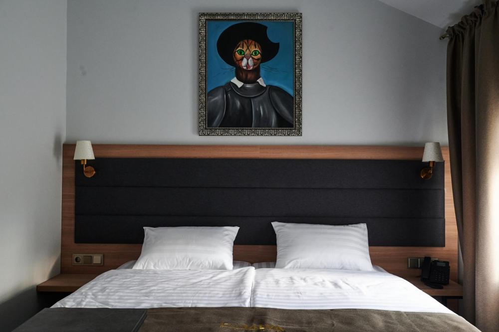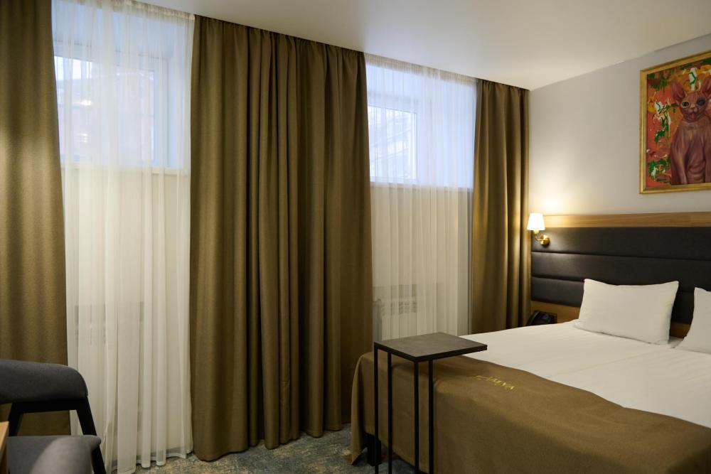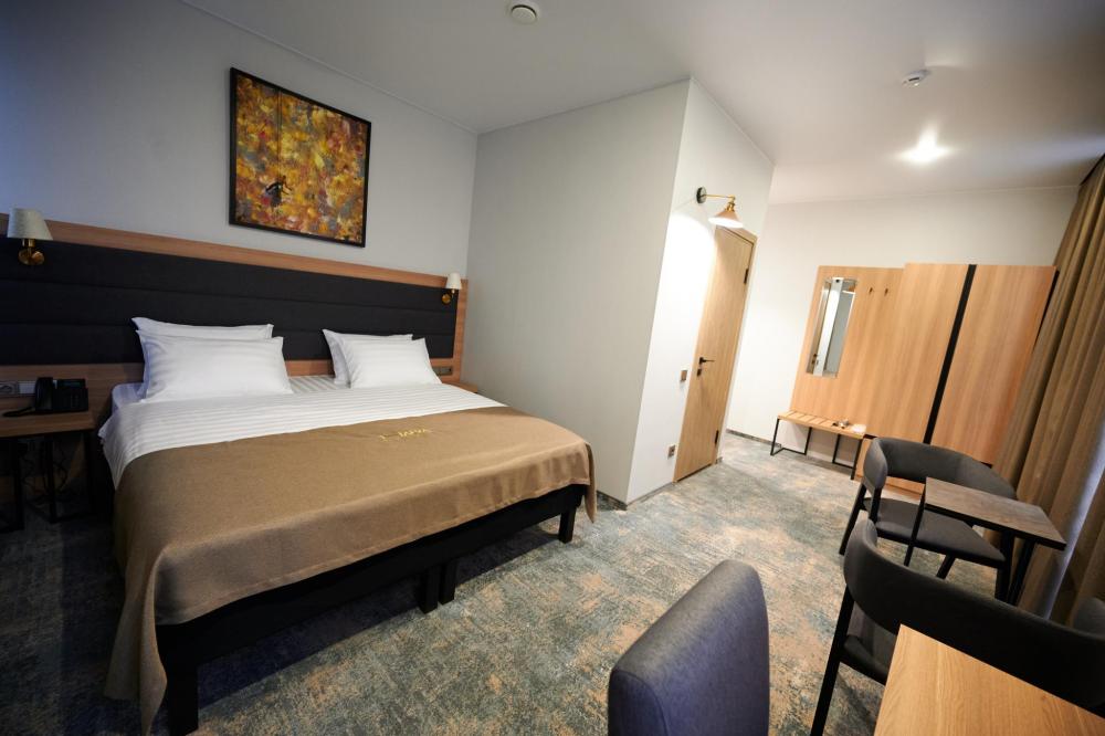 Полулюкс с двуспальной кроватью площадью 24м², с собственной ванной комнатой. Просторный и уютный номер, идеально подходящий для отдыха в самом центре города.