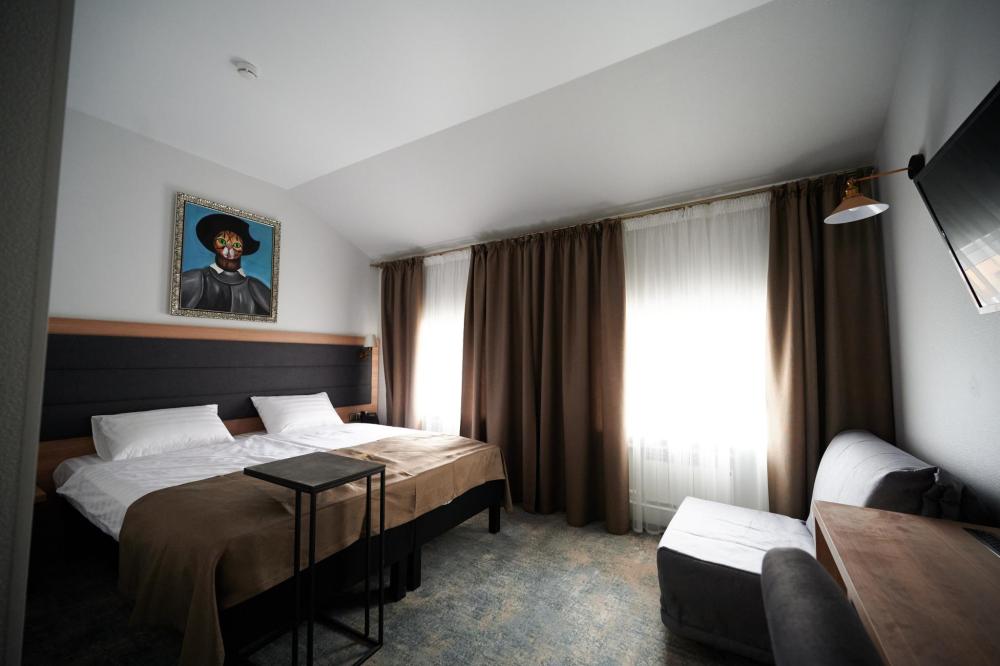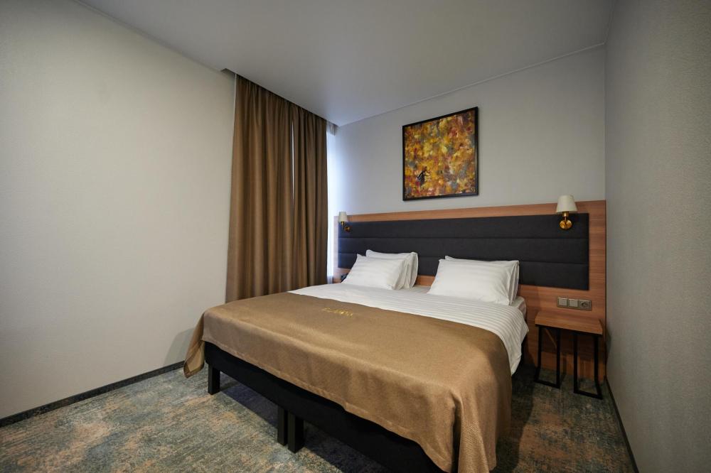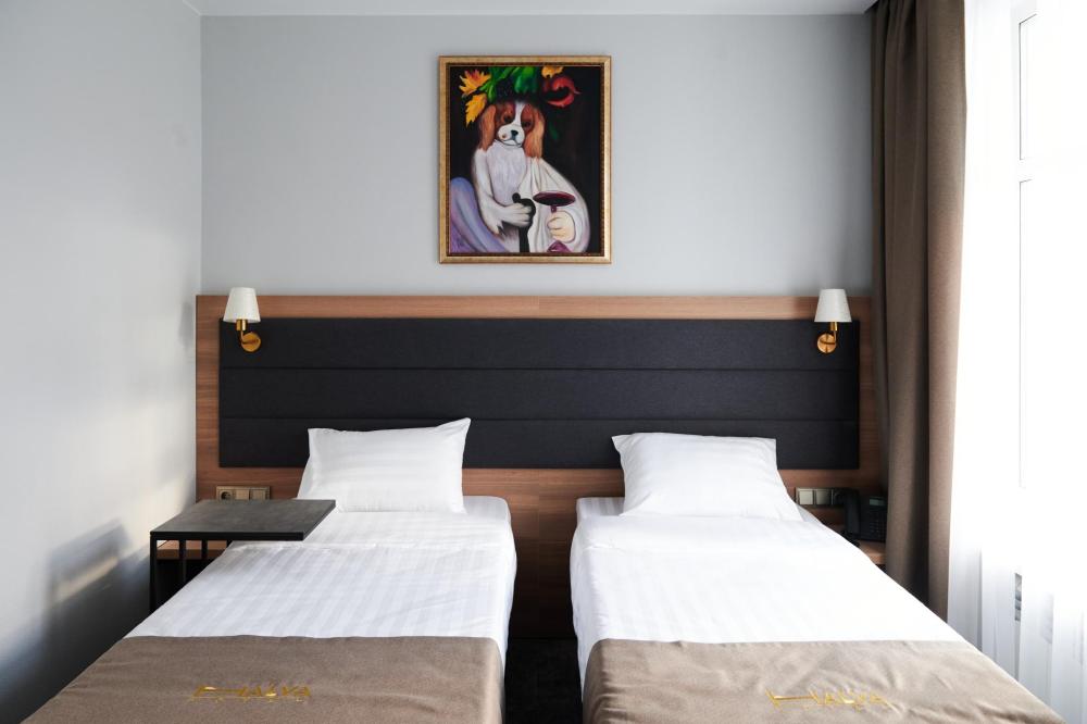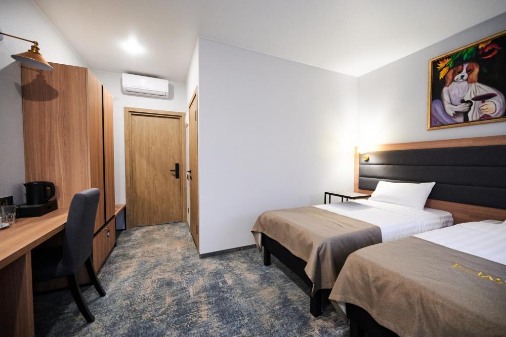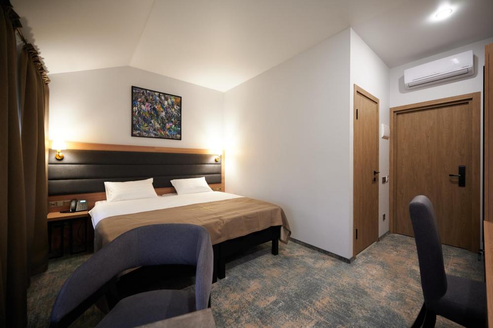 Номер площадью 19м², с собственной ванной комнатой. Есть возможность выбора двуспальной кровати, или же двух односпальных в предпочтениях.