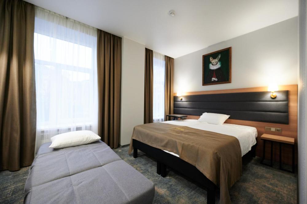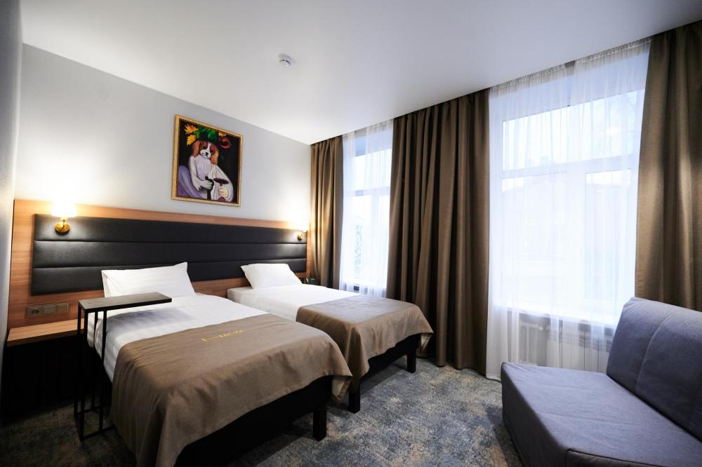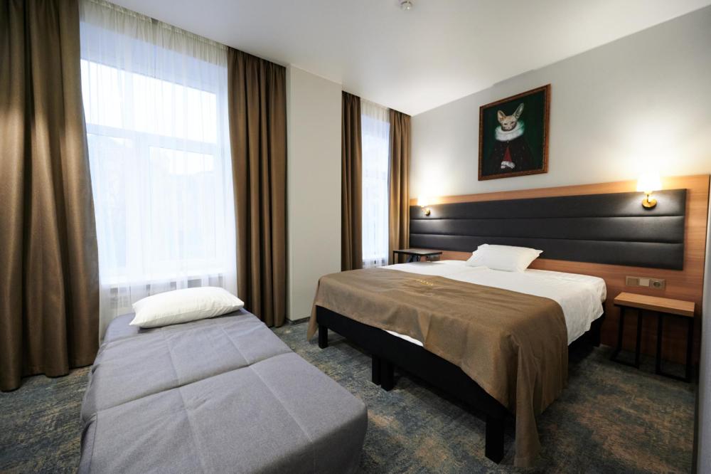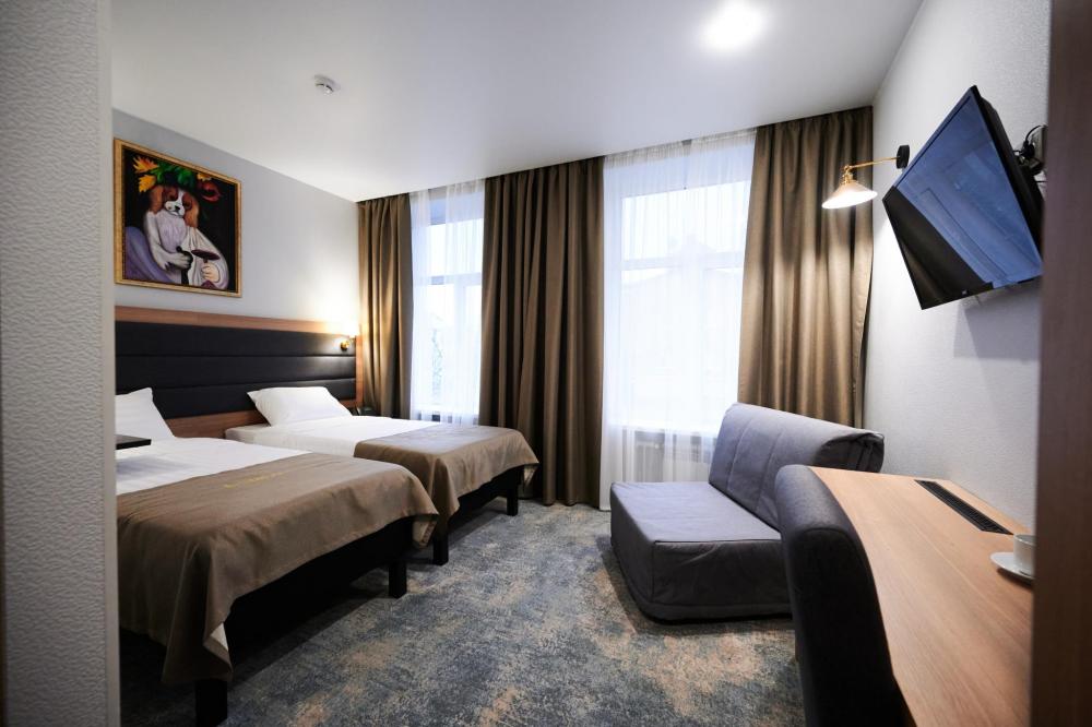 Номер площадью 19м², с собственной ванной комнатой и диваном-кроватью. Есть возможность выбора двуспальной кровати, или же двух односпальных в предпочтениях. Использование дополнительного спального места – 1’900 рублей в сутки Цена дополнительного места сопоставляется автоматически при выборе трех человек в заявке на бронирование.