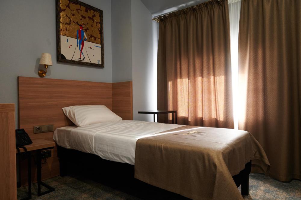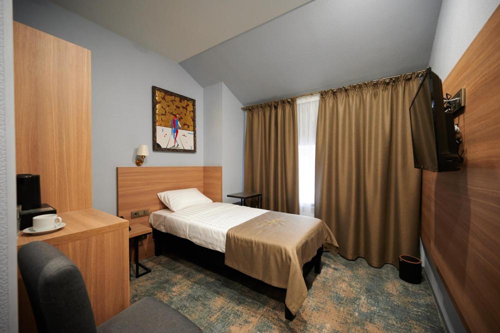 Одноместный номер площадью 13,5м², с собственной ванной комнатой. Уютный номер, идеально подходящий для комфортного отдыха в самом центре города.