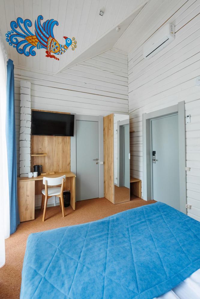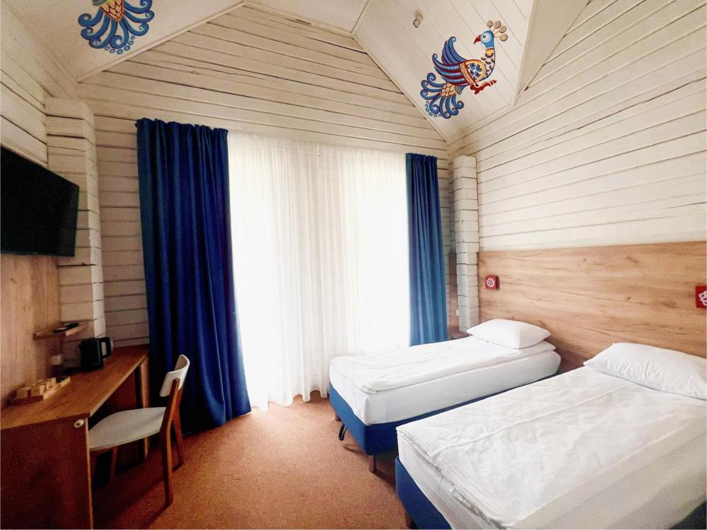 Небольшой уютный номер в корпусе гостиницы. В номере двуспальная кровать или две односпальные кровати. Есть номера с балконом и есть без балкона. В данной категории не предусмотрен мангал и мангальная площадка.