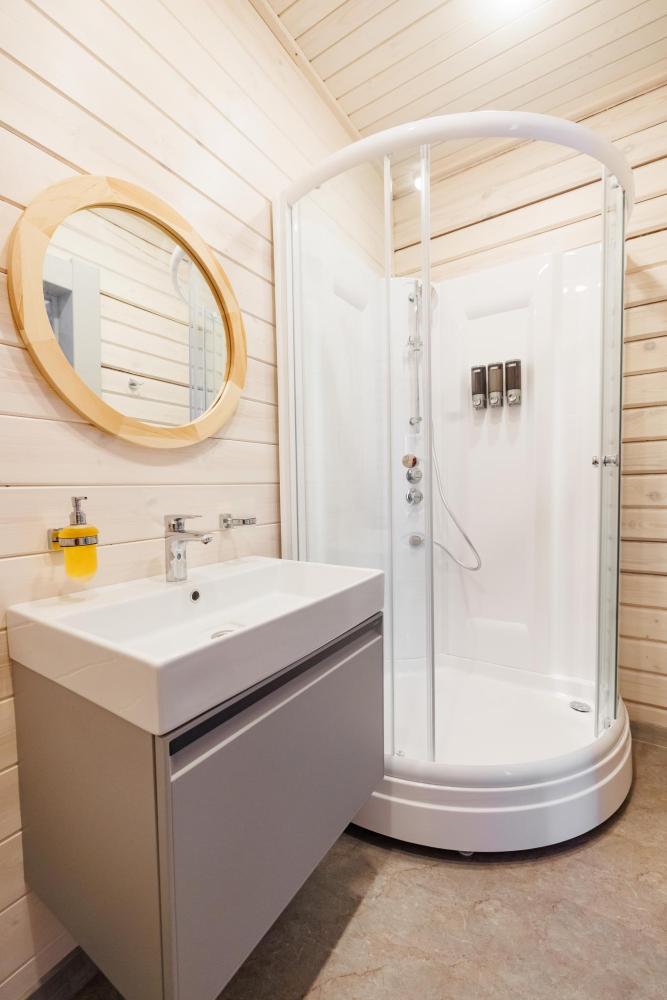 Новые уютные модульные домики с мини-кухней и террасой. Максимальная вместимость - 2 взрослых и 2 ребенка до 16 лет. Двуспальная кровать, телевизор с плоским экраном, диван с двумя спальными местами, стол, 4 стула, шкаф для одежды, кухня (индукционная плитка, раковина, холодильник, электрический чайник, микроволновая печь, набор необходимой посуды). У домика есть терраса с выходом на свою собственную мангальную зона с мангалом.