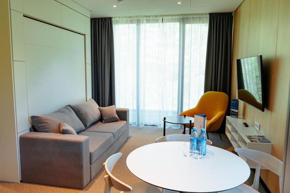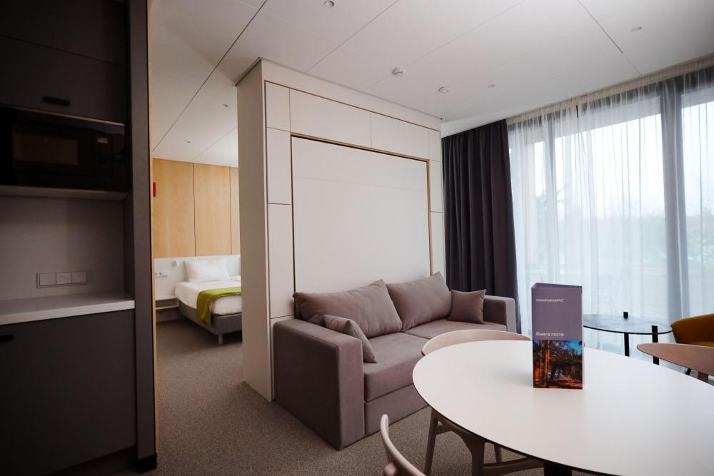 Все «Семейные номера» имеют отдельный вход, террасу и панорамные окна с живописным видом на реку Свирь. Площадь — 39 кв. м. Функциональное зонирование номера — спальня и гостиная-студия с полностью оборудованной встроенной кухней, обеденным столом и зоной отдыха с телевизором. Номер рассчитан на 2-х гостей с возможностью предоставления 2-х дополнительных мест. Гости найдут все необходимое для комфортного отдыха: оборудованная кухня (холодильник, варочная панель, микроволновая печь, посудомоечная машина, чайник, кофемашина), большая двуспальная или две односпальные кровати, ванная комната с душевой кабиной, телевизор, шкаф для одежды. Проживание с домашними питомцами не предусмотрено.