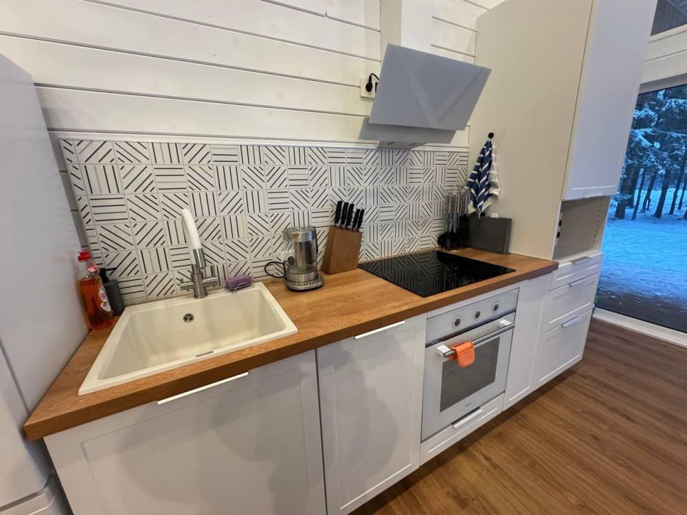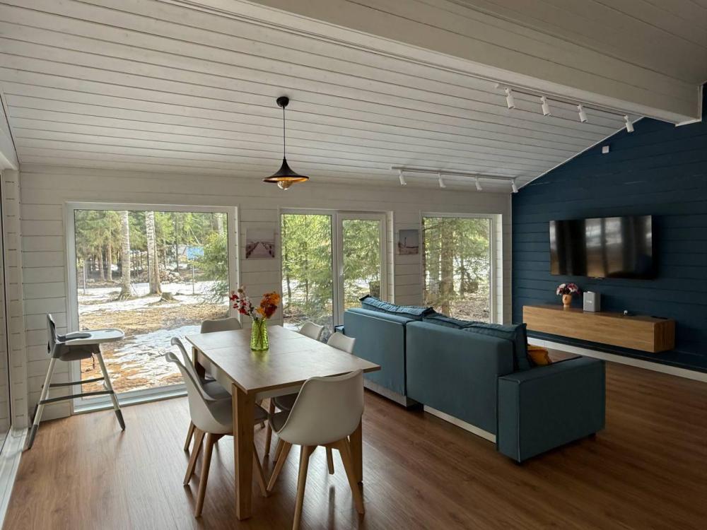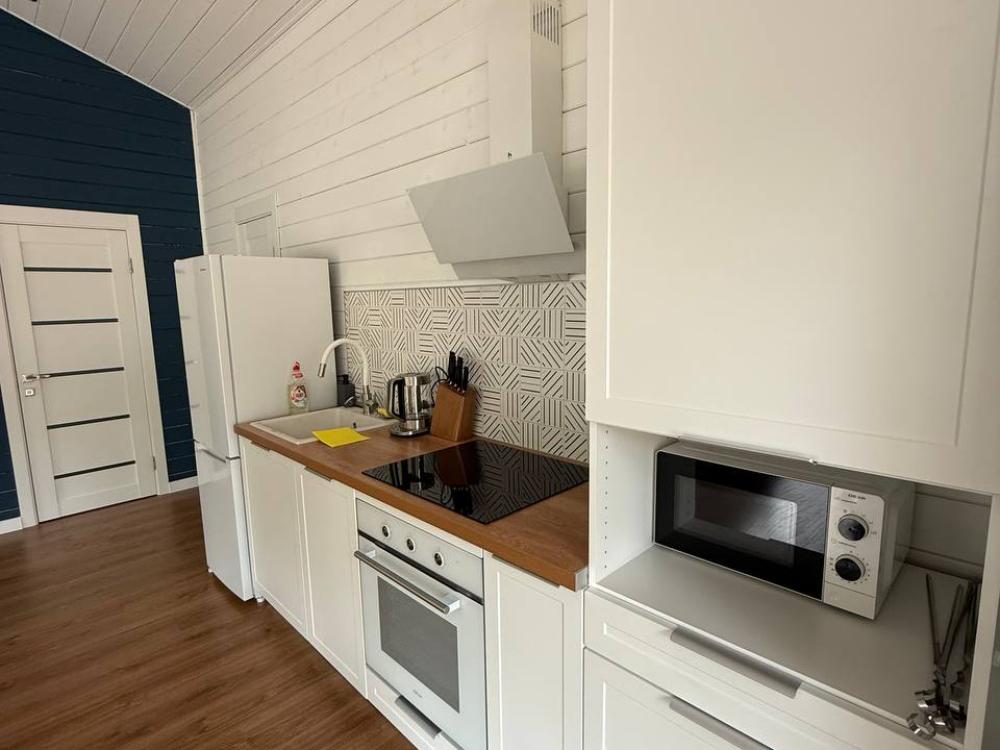 Вместимость: комфортно до 6 гостей. По согласованию — можно больше (например, семьи с детьми, 4 взрослых и 3 ребёнка). Можно с собаками, кошками и другими животными. Дом очень теплый, установлены конвекторы в каждой комнате, есть большая колонка Алиса, телевизор со Smart TV (все приложения, YouTube, Кинопоиск с подпиской и т.д.), высокоскоростной интернет 300 МБ/сек., стильная мебель, современная техника, вся необходимая посуда, чистое белье и полотенца, зубные и мыльные принадлежности, детский стульчик, мангал. В доме: две спальни (спальня 1 с кроватью 160х200, спальня 2 с кроватью 160х200), кухня-гостиная (диван раскладывающийся 160х200), техника: посудомоечная машина, духовой шкаф, индукционная плита, холодильник, стиральная и сушильная машина, фен, электрический чайник, большая колонка Алиса, большой ТВ (55”) конвекторы для обогрева, микроволновка, детский стульчик, умные весы,полотенца, постельные принадлежности, средства гигиены, кухонная утварь, чай, специи, и другие мелочи.