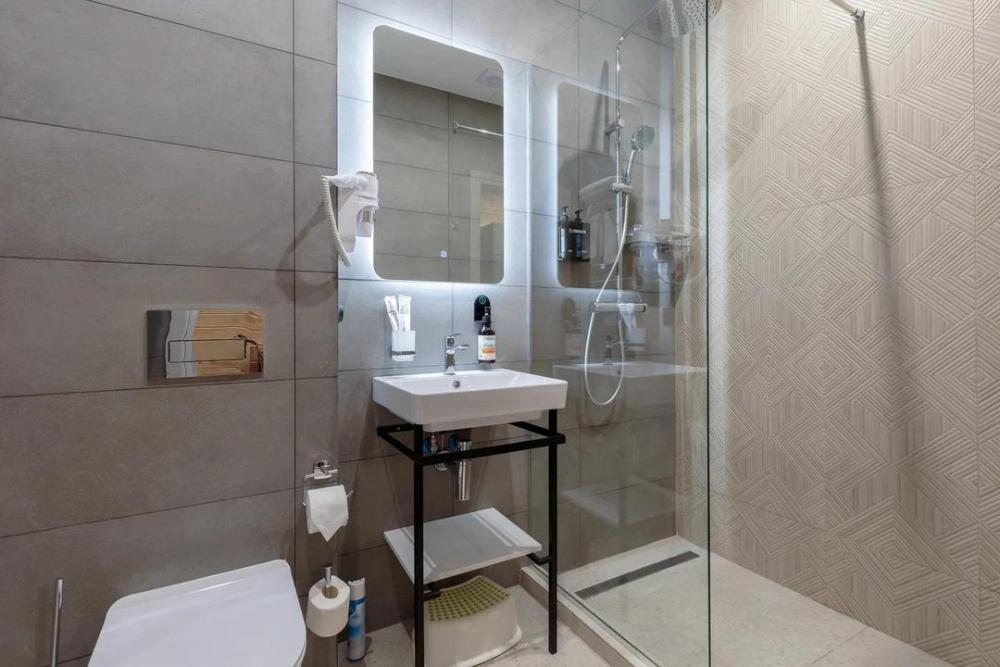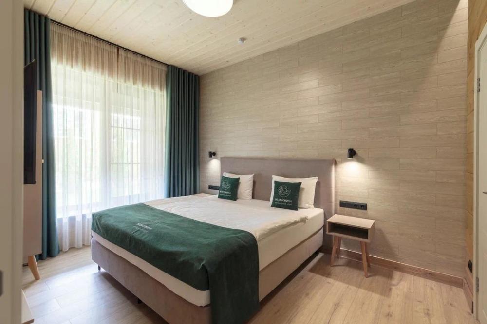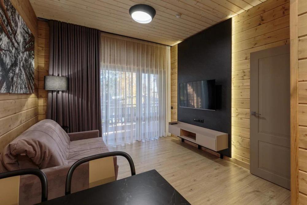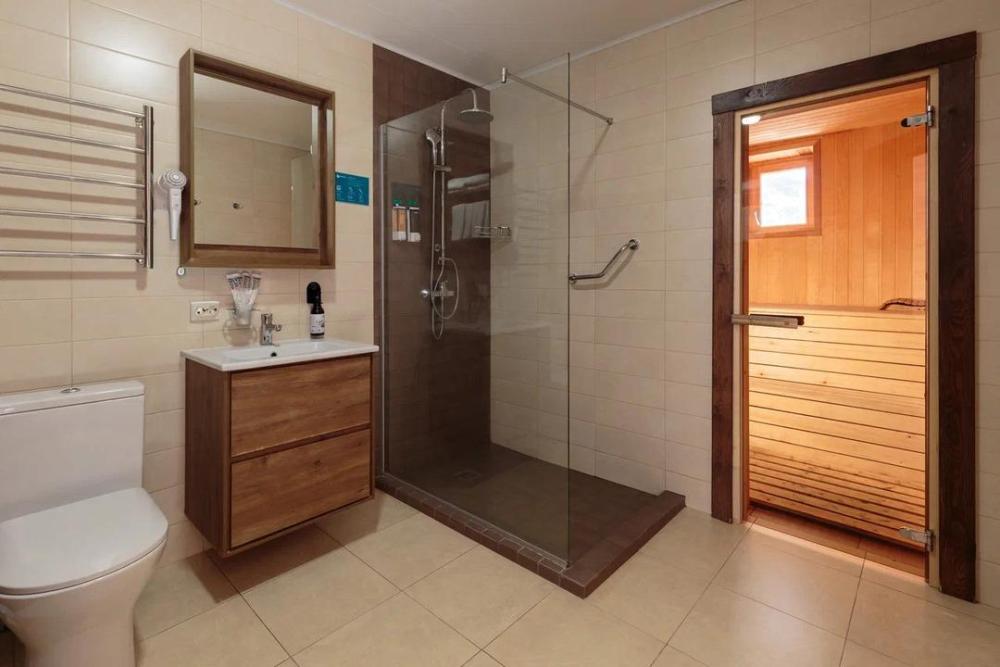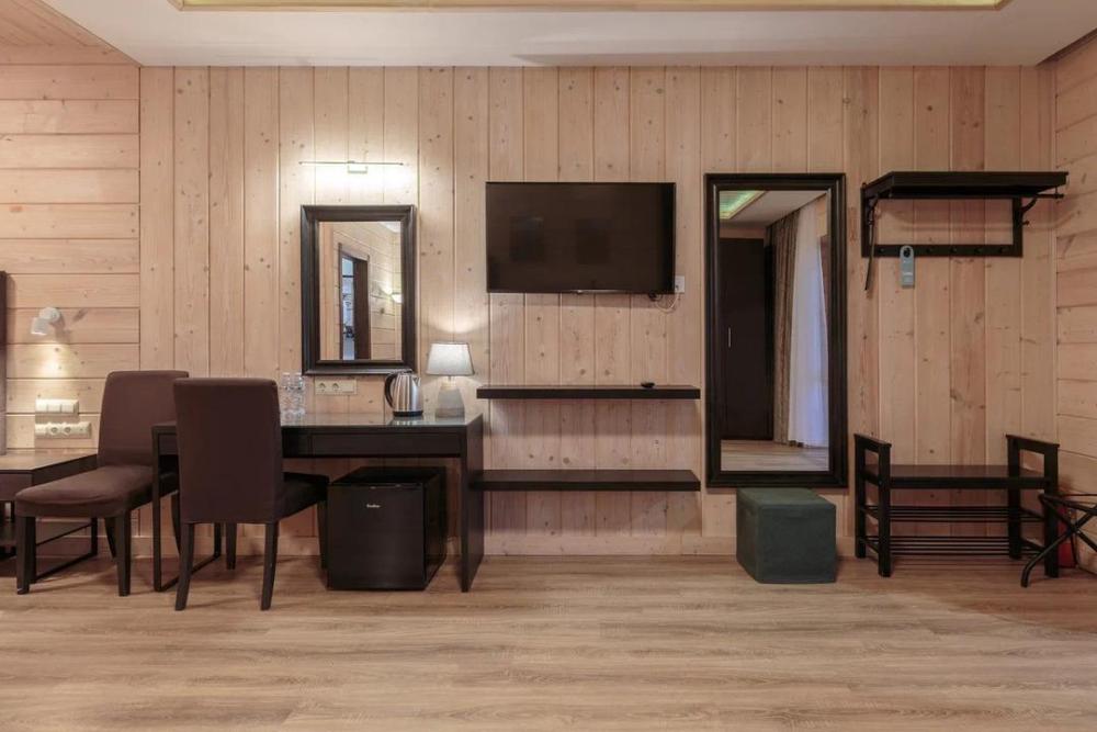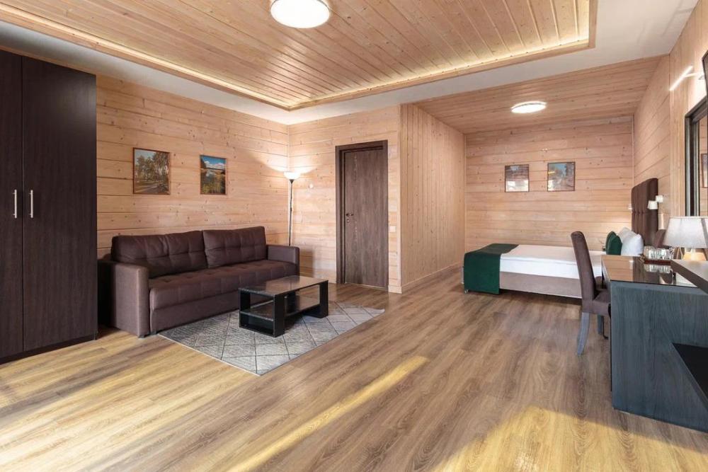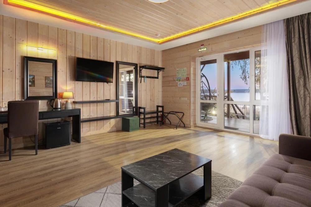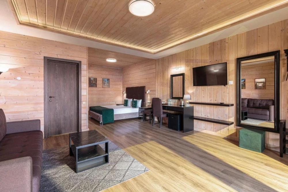 Просторные номера с отдельным входом и собственной террасой с мебелью. В номере большая двуспальная кровать, удобный диван и кресло. Просторная ванная комната с феном и полотенцами. В номере есть место для одежды, Smart-телевизор, электрический чайник, мини-холодильник.