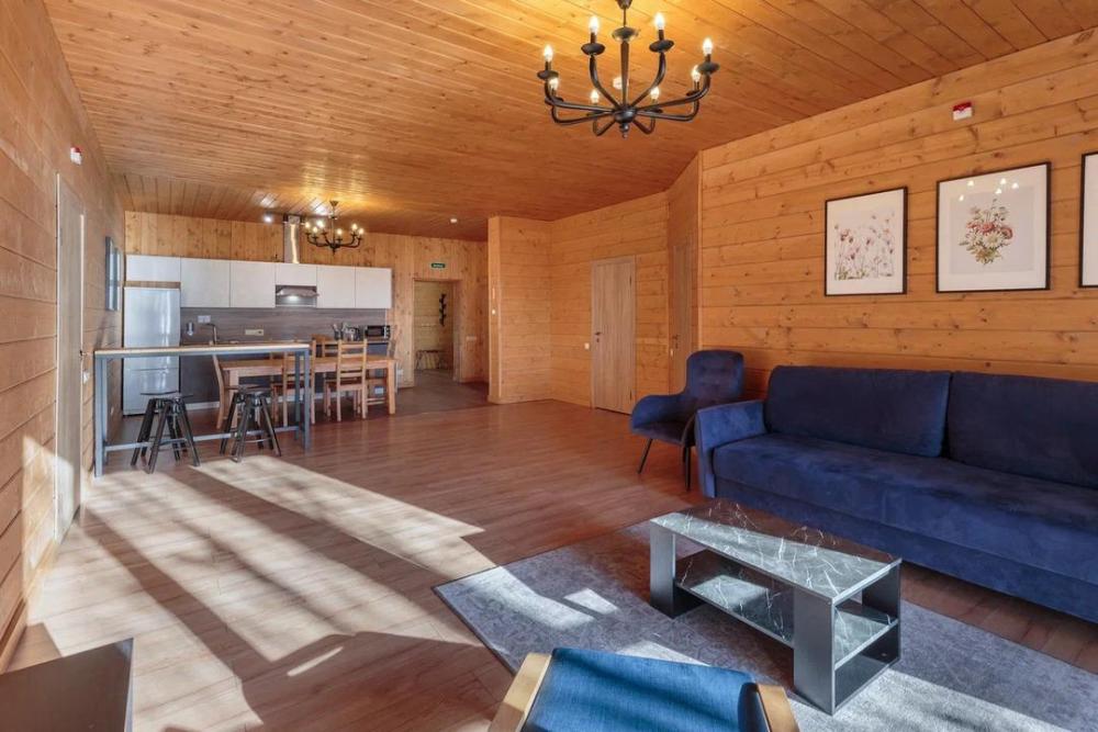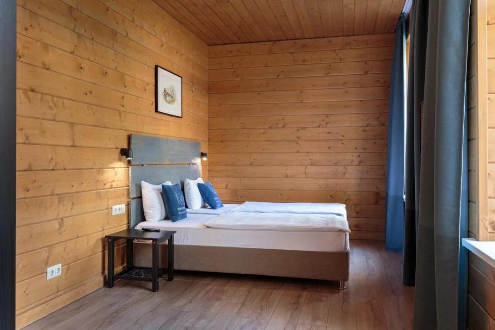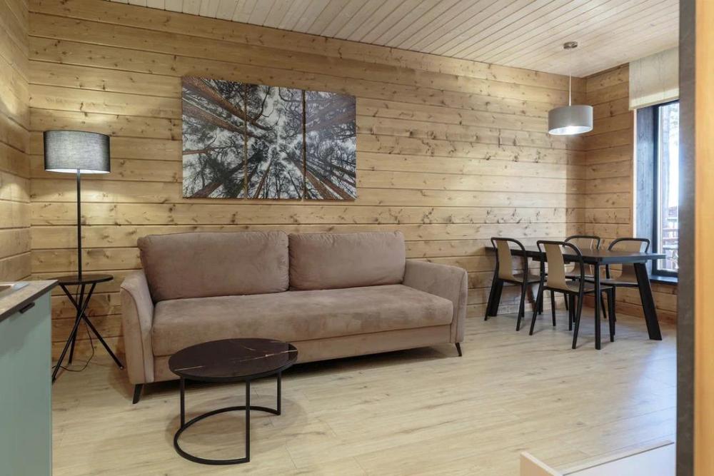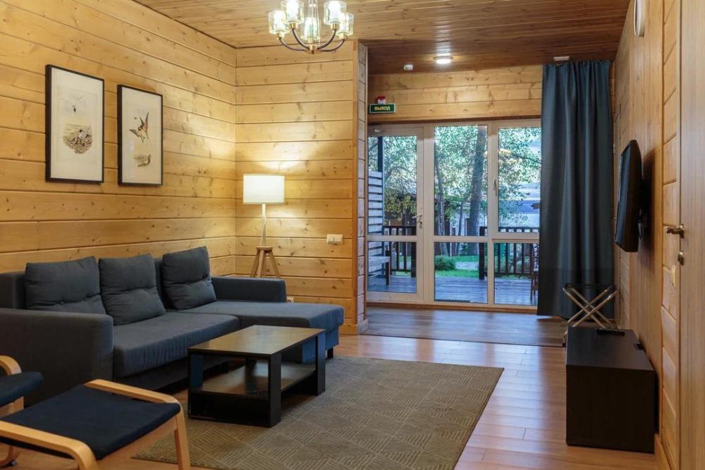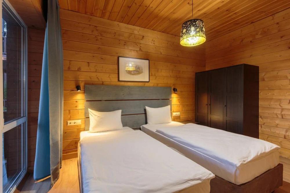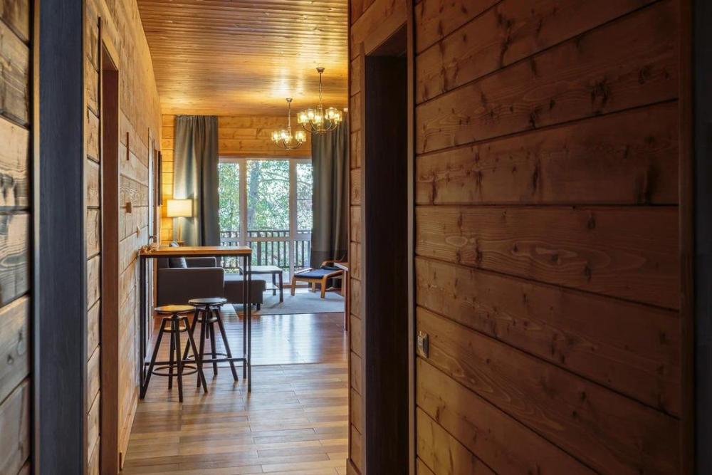 Это большие дома со стильным интерьером и огромными террасами. Шале на 6 персон расположены на этаже. Внутри три уютные спальни, просторная гостиная с кухонной зоной, сауна и большая терраса с газовым грилем.