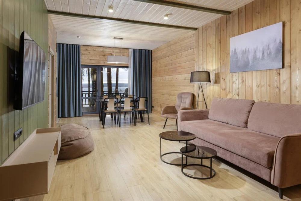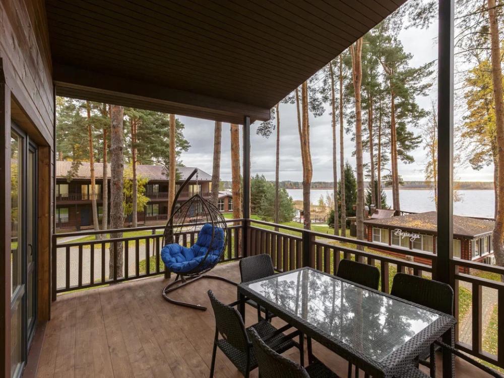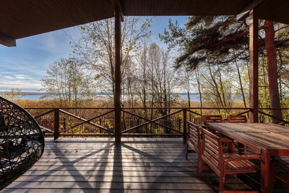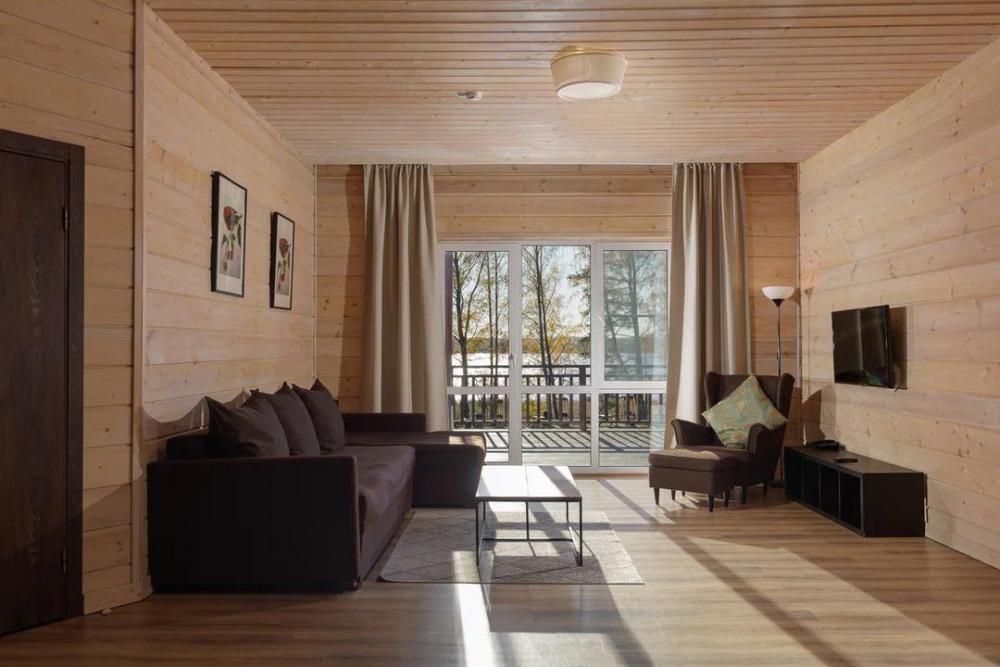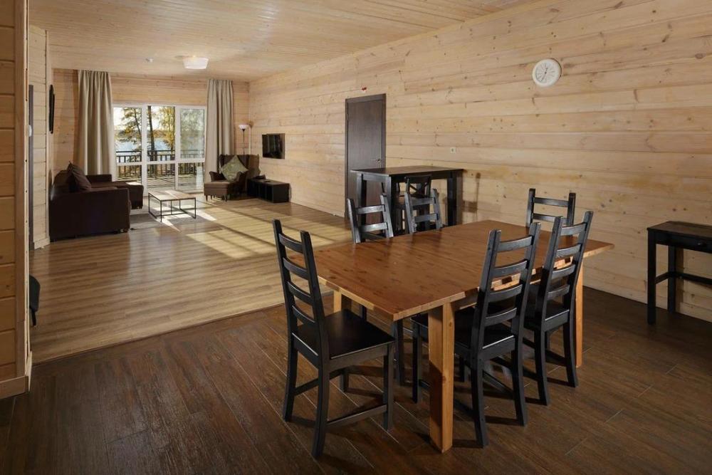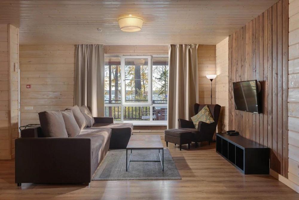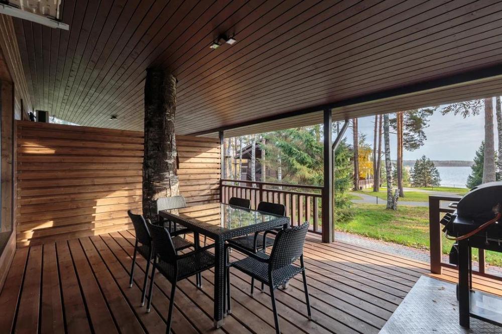 Просторные дома со стильным интерьером, огромными террасами с видом на Вуоксу. В шале 4 спальни, просторная гостиная с кухонной зоной, сауна, а также большая терраса с газовым грилем и видом на реку Вуокса.