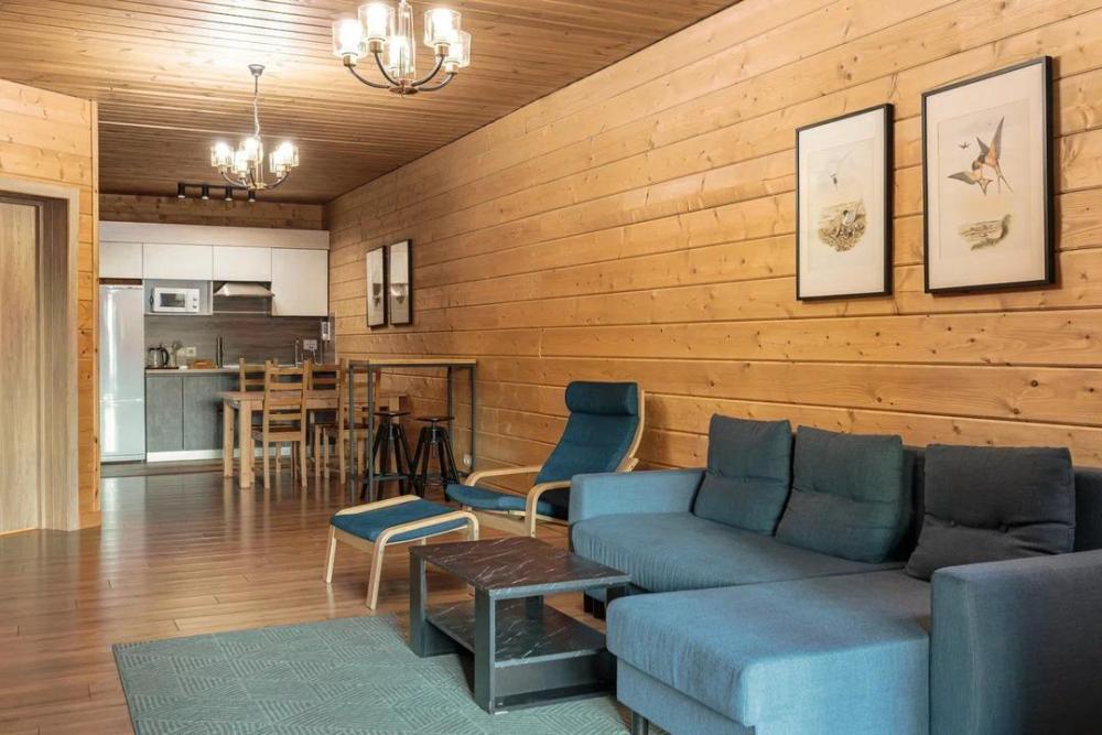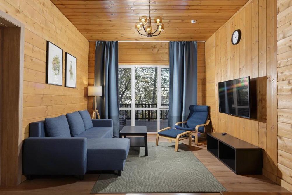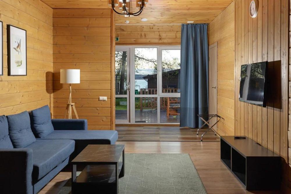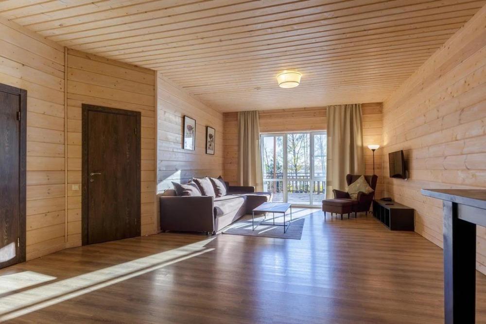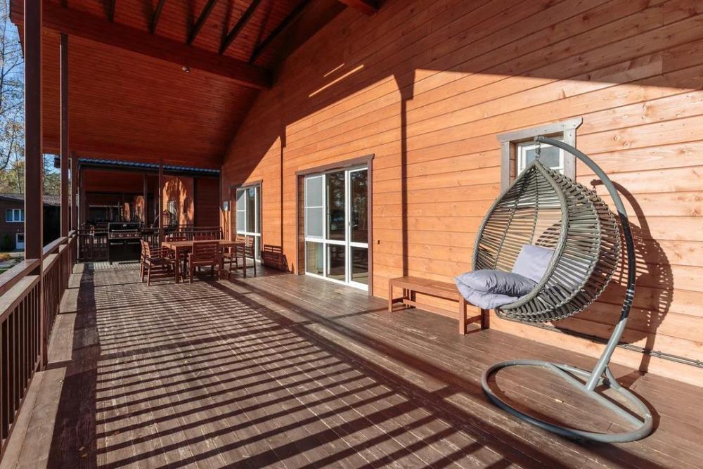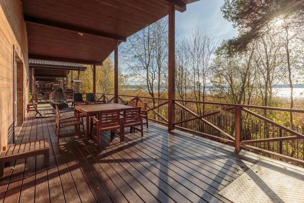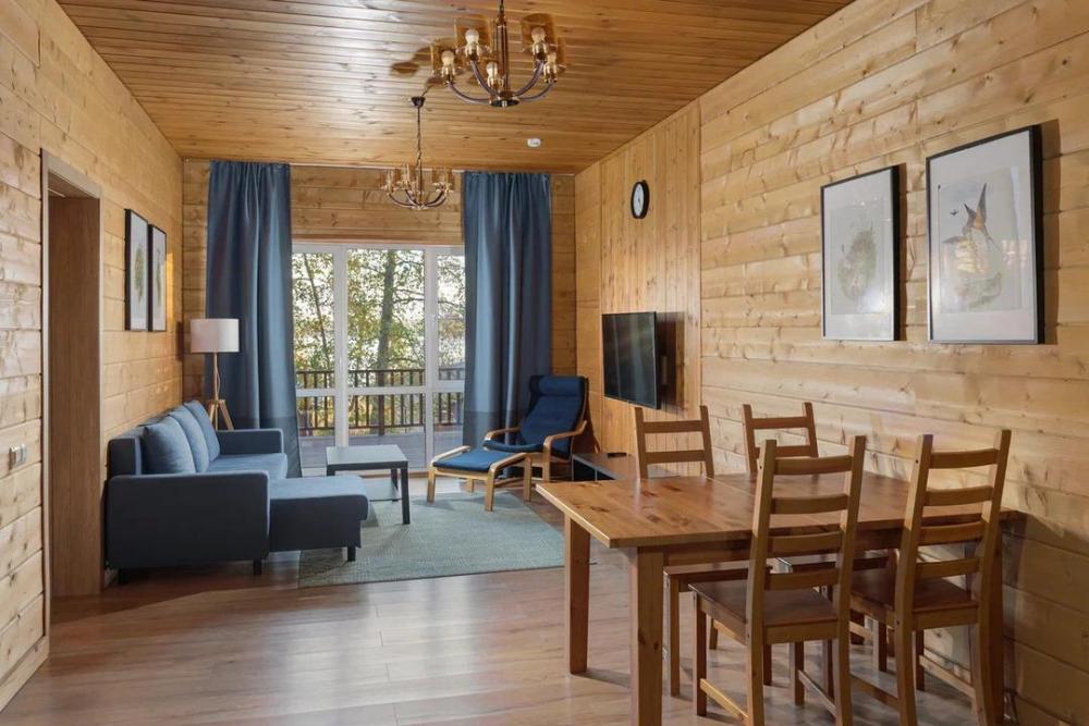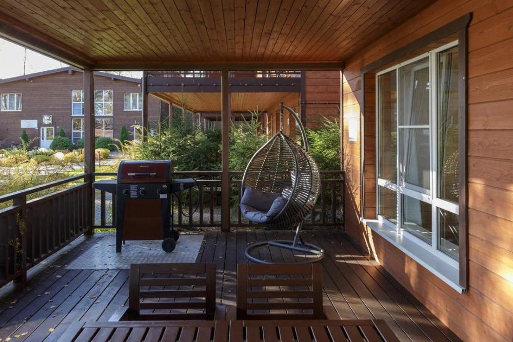 Просторные дома со стильным интерьером, огромными террасами с видом на Вуоксу. В шале 4 спальни, просторная гостиная с кухонной зоной, сауна, а также большая терраса с газовым грилем и видом на реку Вуокса.