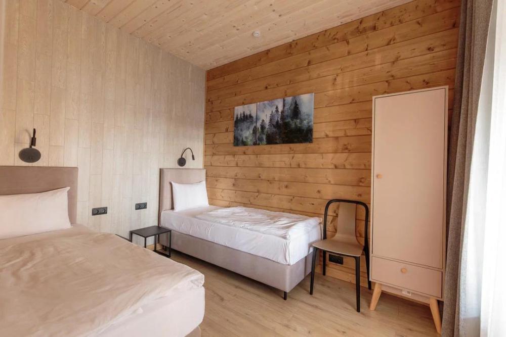 Комфортный номер для 2 человек. У каждого номера есть балкон с мебелью. Из панорамных окон открывается вид на территорию загородного клуба. В просторной ванной комнате есть фен и полотенца. Номер оборудован электрическим чайником, мини-холодильником. В холодную погоду работают теплые полы.
