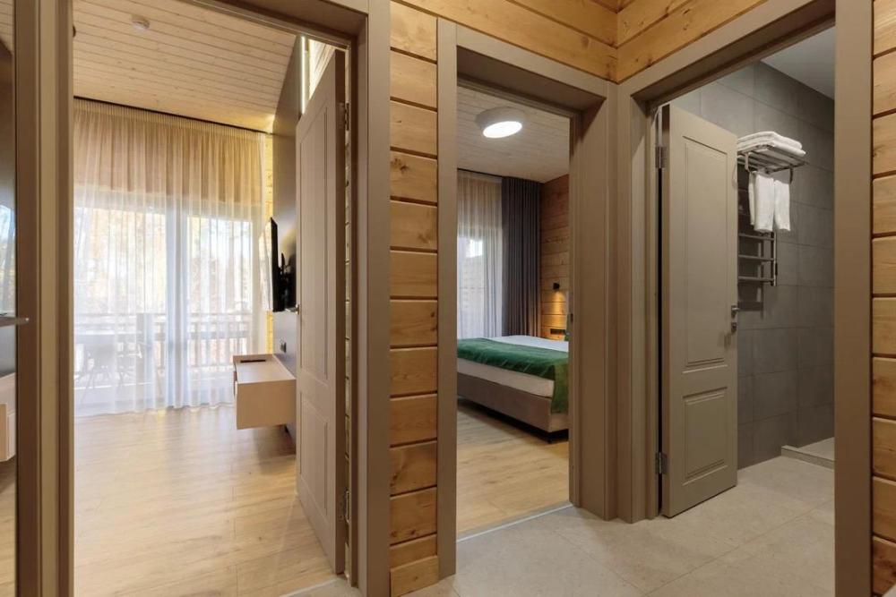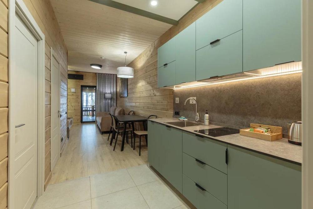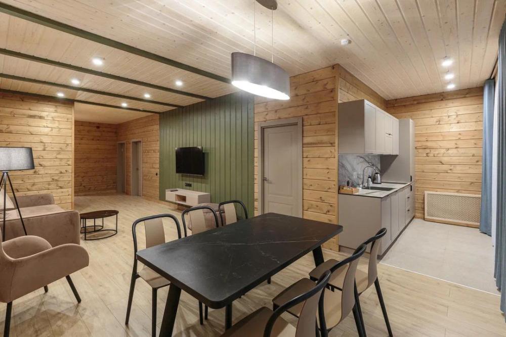 Комфортные дуплексы расположены в самой тихой территории загородного клуба. Первый и второй этажи – это отдельные варианты для проживания и отдыха с независимыми входами, расположенными на разных уровнях. В номере три спальни, кухонная зона совмещенная с гостиной и просторная терраса с газовым грилем.
