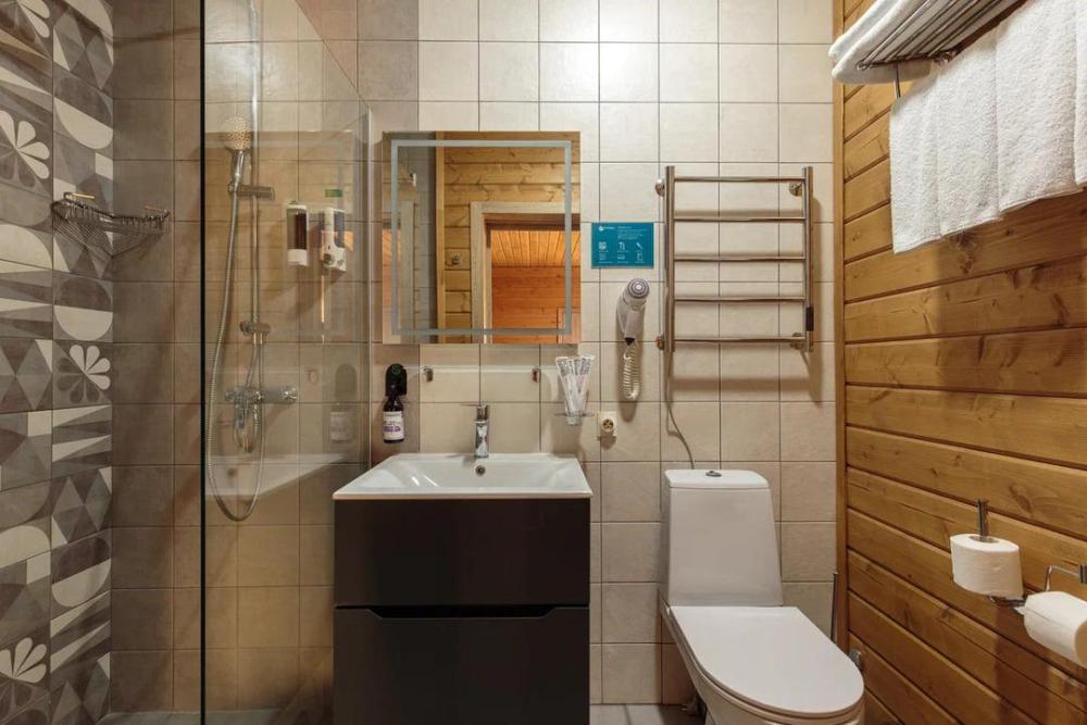 Комфортный номер для 2 человек. У каждого номера есть балкон с мебелью. Из панорамных окон открывается вид на реку Вуокса. В просторной ванной комнате есть фен и полотенца. Номер оборудован электрическим чайником, мини-холодильником. В холодную погоду работают теплые полы.