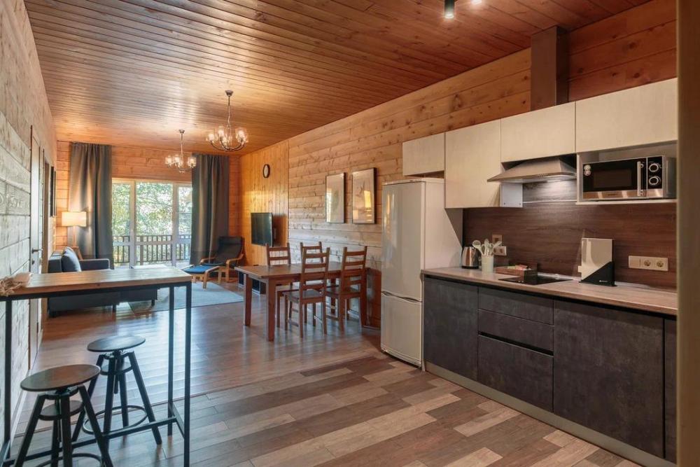 Комфортный дуплекс подходит для размещения 4 человек с отдельным входом и террасой. В коттедже в 2 спальни, просторная гостиная, Smart-телевизор. На оборудованной кухне есть холодильник, варочная поверхность, вытяжка, микроволновая печь, электрический чайник, комплект посуды на каждого гостя, столовые приборы, посуда для приготовления. Для удобства гостей в коттедже имеется две отдельные ванные комнаты с душевой кабиной.