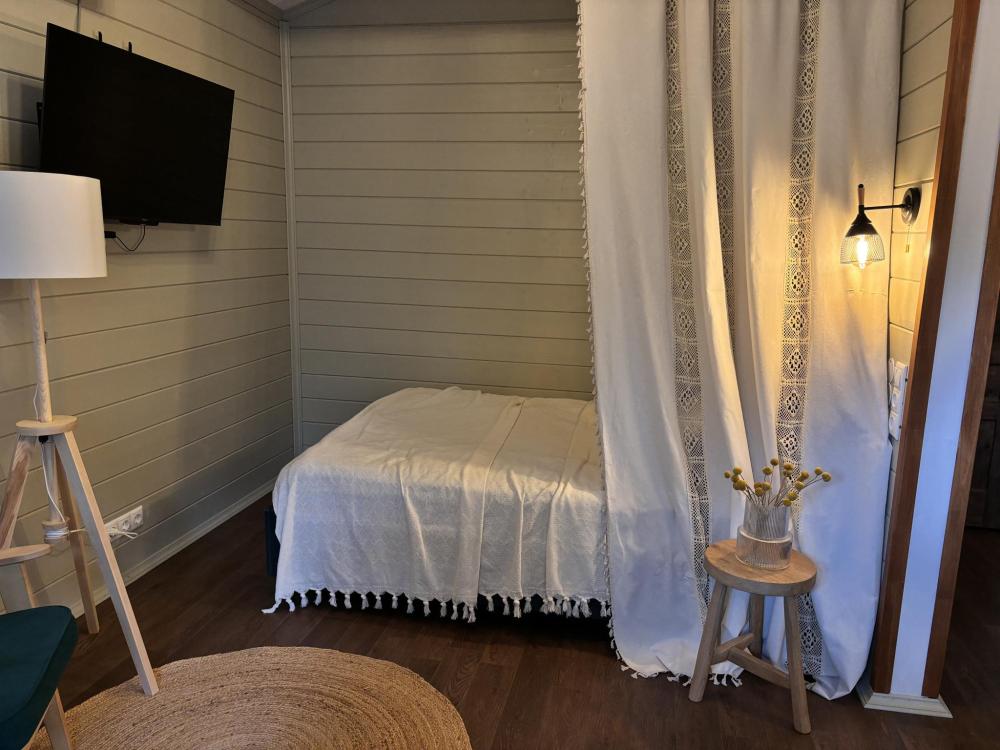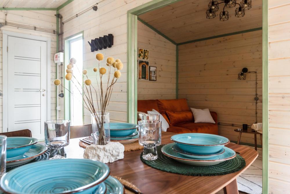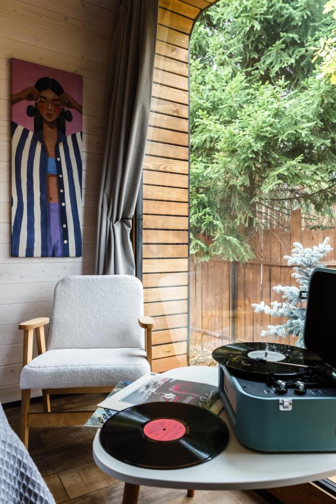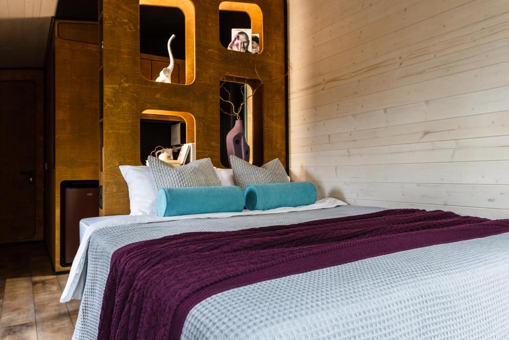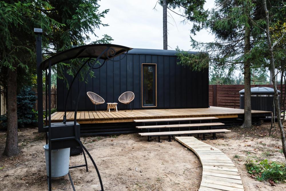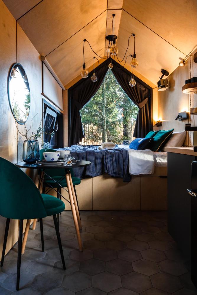 Стильный и уютный дом-студия с панорамным прикроватным окном, удобной двуспальной кроватью, ванной комнатой, мини-кухней и обеденной зоной. Дом полностью оснащен всем необходимым для комфортного отдыха в тишине и спокойствии. В зоне сна вас ждет удобные ортопедические матрас и подушки Askona, мягкое постельное, теплое одеяло. У кровати есть светильники и беспроводные зарядные устройства для телефонов, а также проектор для просмотра фильмов перед сном. Обязательно воспользуйтесь виниловым проигрывателем, музыка пластинок задаст особенное настроение любому вечеру. На кухне найдете мини-холодильник, кофеварку, индукционную плиту, термопот, тостер, микроволновую печь, специи и соусы. В ванной комнате вас ждут все средства личной гигиены, набор полотенец и удобные халаты. Терраса дома обустроена уличной мебелью, у дома есть купель, зона барбекю, очаг для согревающих вечеров и стол для душевных посиделок за обедом или ужином. Выходить на улицу и гулять вам будет очень удобно в тапочках-кроксах, которые мы предоставляем каждому гостю. Приятного отдыха.