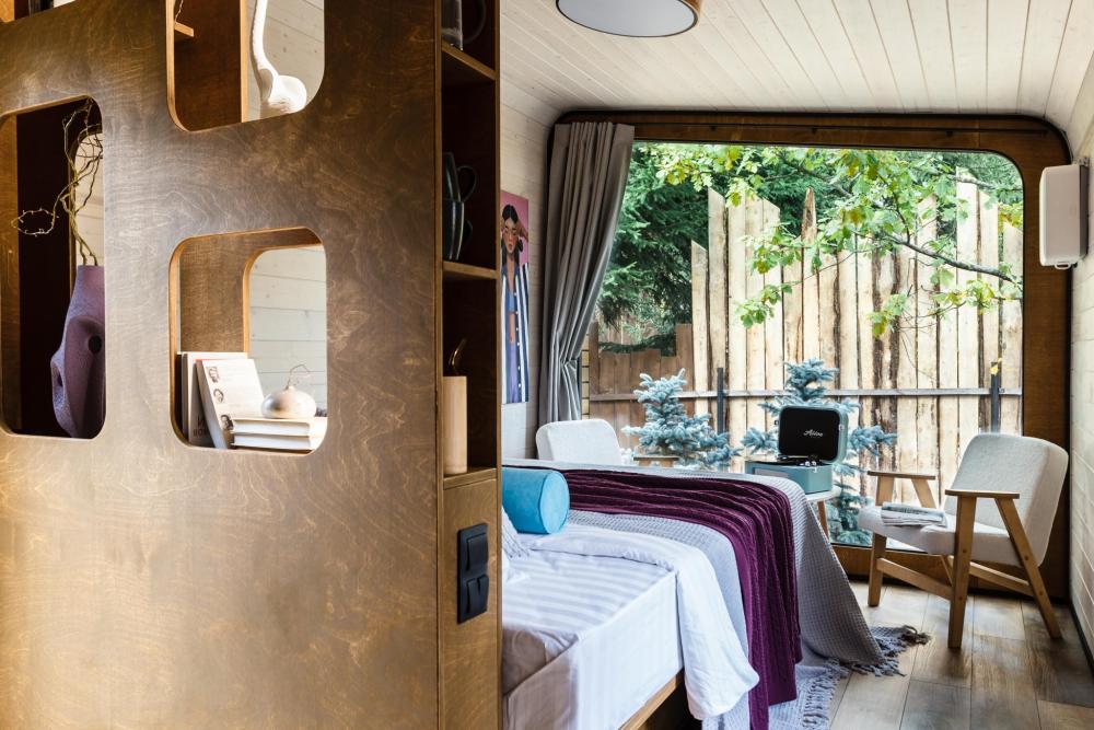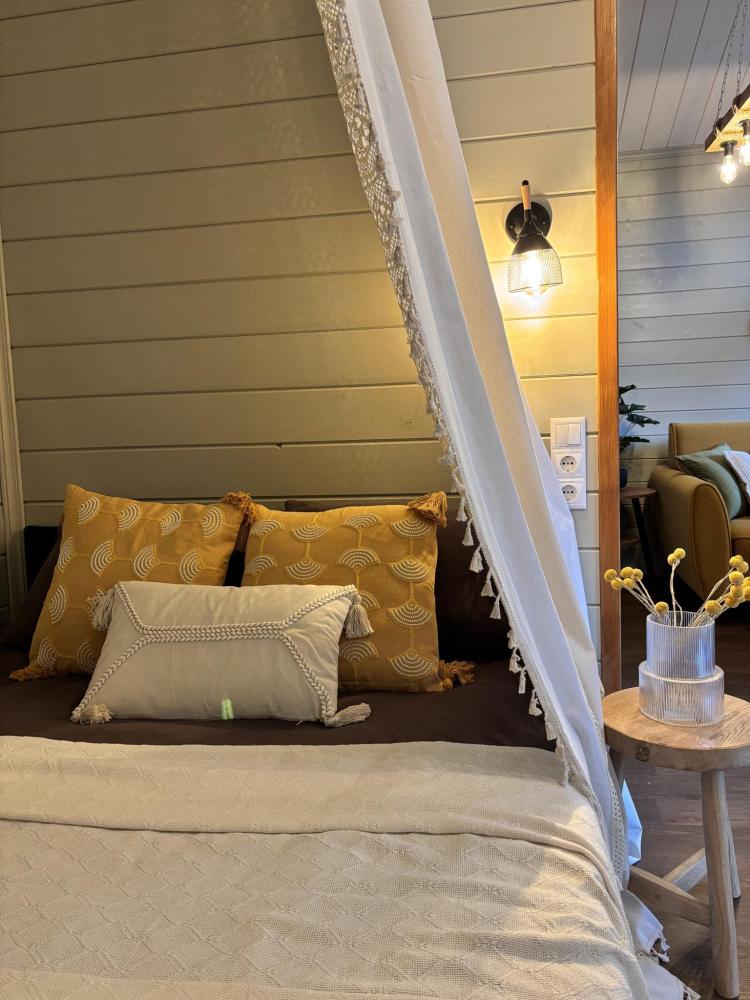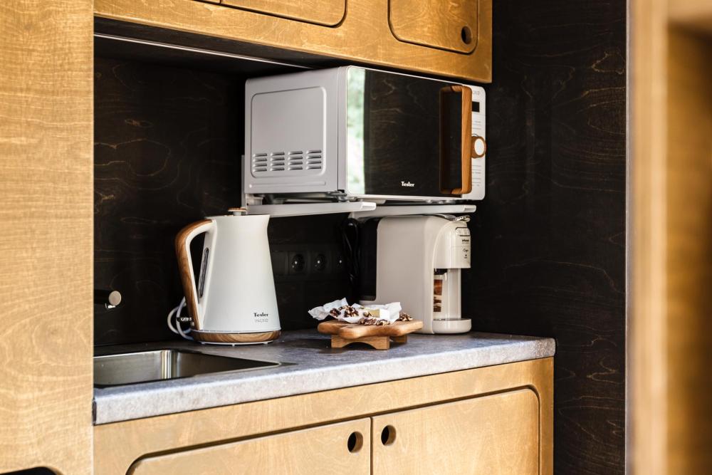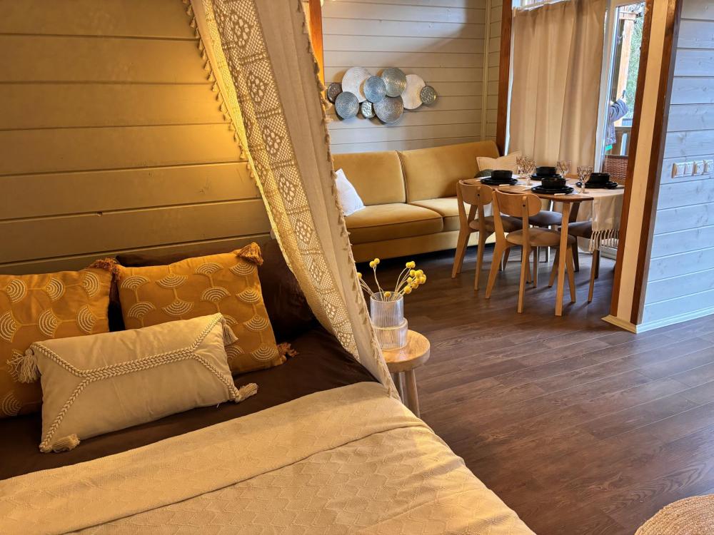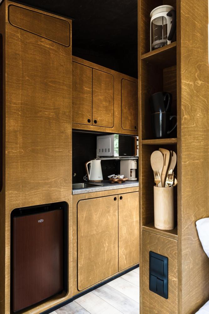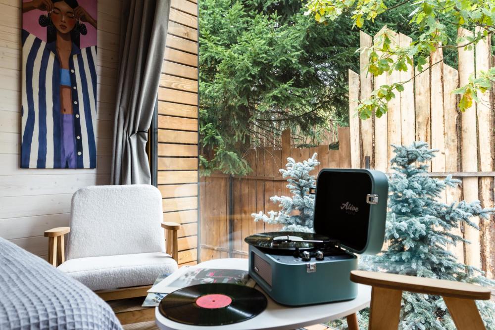 Стильный и уютный дом-студия с панорамным прикроватным окном, удобной двуспальной кроватью, ванной комнатой, мини-кухней и обеденной зоной. Дом полностью оснащен всем необходимым для комфортного отдыха в тишине и спокойствии. В зоне сна вас ждет удобные ортопедические матрас и подушки Askona, мягкое постельное, теплое одеяло. У кровати есть светильники и беспроводные зарядные устройства для телефонов, а также проектор для просмотра фильмов перед сном. Обязательно воспользуйтесь виниловым проигрывателем, музыка пластинок задаст особенное настроение любому вечеру. На кухне найдете мини-холодильник, кофеварку, индукционную плиту, термопот, тостер, микроволновую печь, специи и соусы. В ванной комнате вас ждут все средства личной гигиены, набор полотенец и удобные халаты. Терраса дома обустроена уличной мебелью, у дома есть купель, зона барбекю, очаг для согревающих вечеров и стол для душевных посиделок за обедом или ужином. Выходить на улицу и гулять вам будет очень удобно в тапочках-кроксах, которые мы предоставляем каждому гостю. Приятного отдыха.