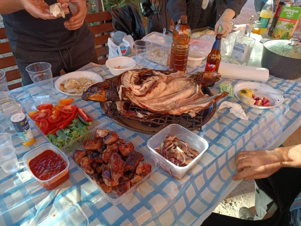 Большой уютный двухуровневый номер 50 кв м. с камином ( дополнительная услуга) и ванной - авторский проект. Панорамный вид в сад с красивым хвойным деревом - сосной. В апартаментах кухня с плитой - духовым шкафом и микроволновой печью с чайником. ЖК (телевизор), холодильник, стиральная машина, полотенцесушитель. Два двухспальных места и два односпальных. Шкаф для белья и тумбочки. Мангал - барбекю бесплатно!!!