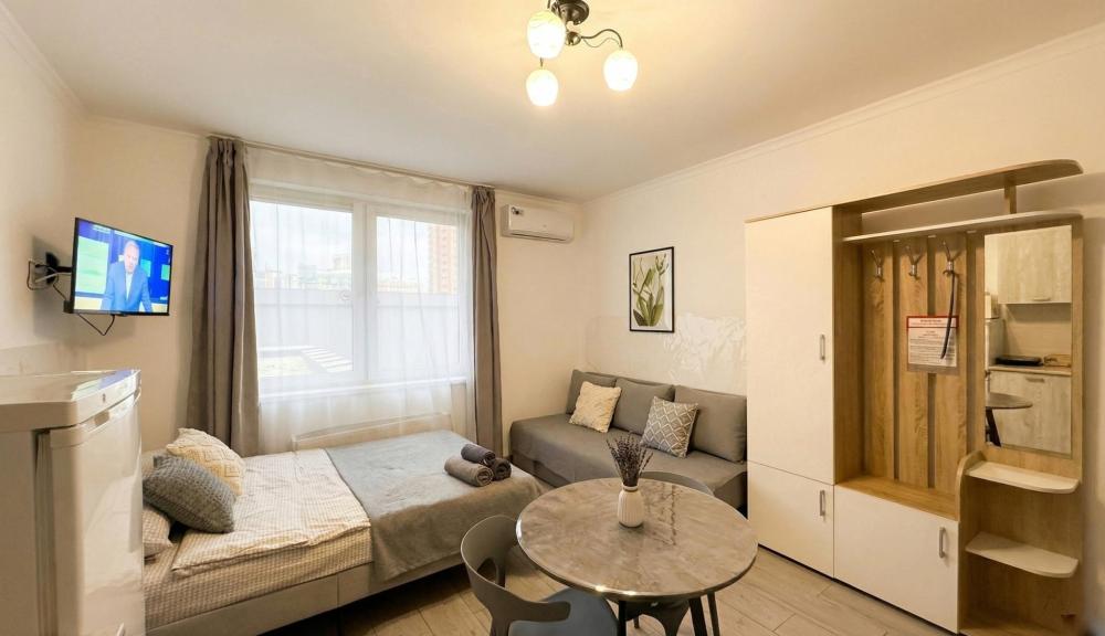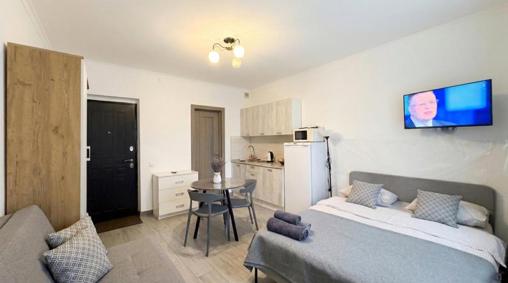 Новая студия в Люберцах. 3 мин до станции Люберцы-1. В апартаментах есть: · Двуспальная кровать с удобным матрасом. · Застеленное чистое постельное белье, полотенца · большой ЖК- телевизор · Бесплатный высокоскоростной Wi-Fi · Холодильник · Кухонная плита · Электрический чайник · Микроволновка · Стиральная машина / фен / утюг · Сушилка для белья · душ · столы, стулья. · Оборудованная кухня, посуда, все для приготовления еды. Рядом: торговый центр, KFC, ДоДо пицца, аптека, кинотеатр, парк, магазины, пункты обмена валют, сауна, свободные парковочные места. Идеальный вариант вместо отеля снять квартиру посуточно для командировки или семейного отдыха.