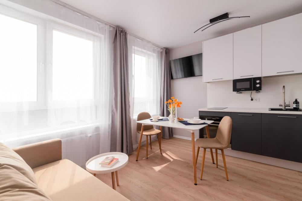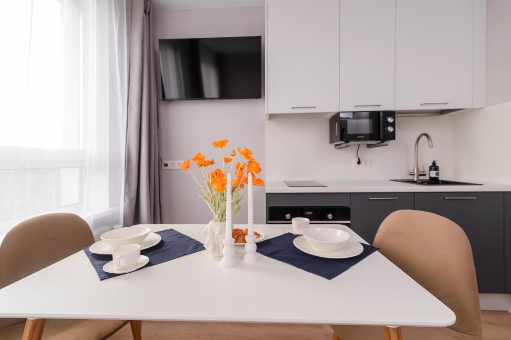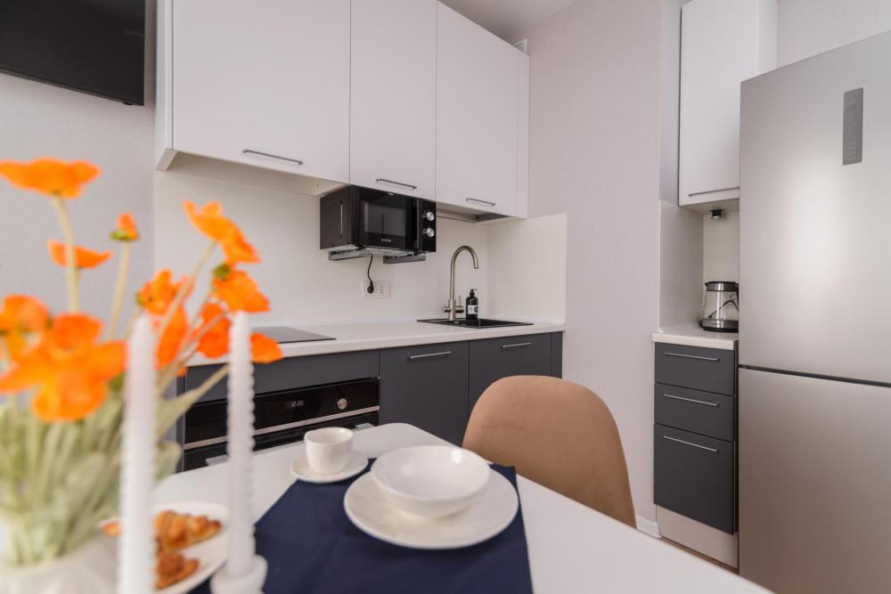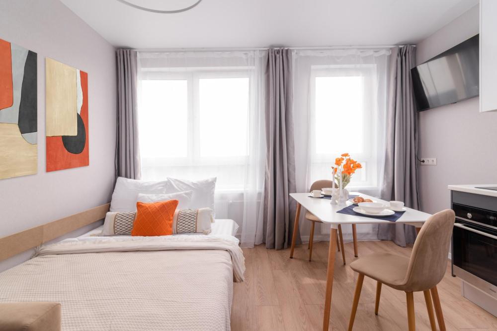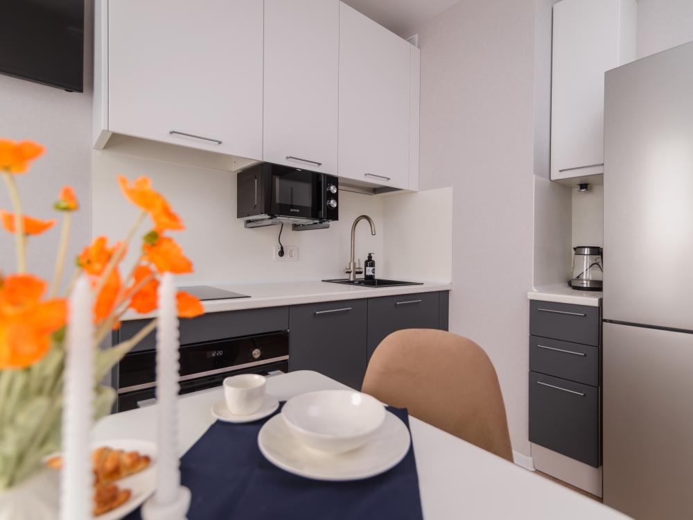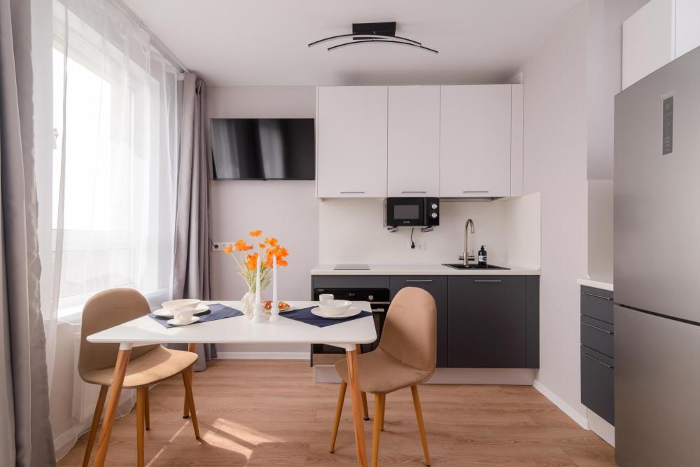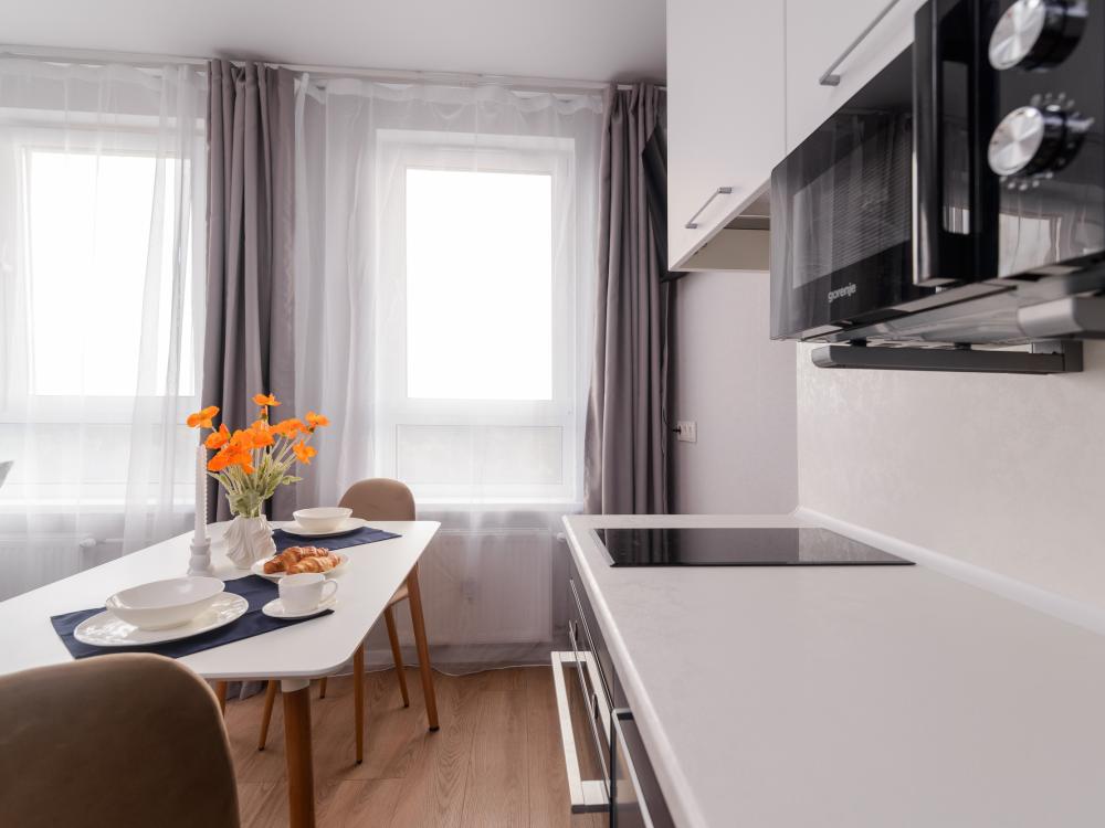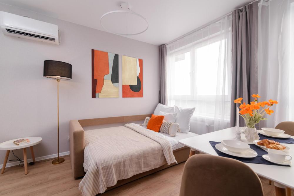Квартира оборудована всем необходимым: - Вместимость до 2 гостей (раскладной диван) - Полотенце, тапочки, зубной набор, шампунь, гель для душа - Санузел совмещённый, душ, стиральная машина, фен, утюг - Полноценная кухня (электроплита, холодильник, микроволновка, чайник, духовка, посудомоечная машина) - Высокоскоростной Wi-Fi и ТВ, кондиционер