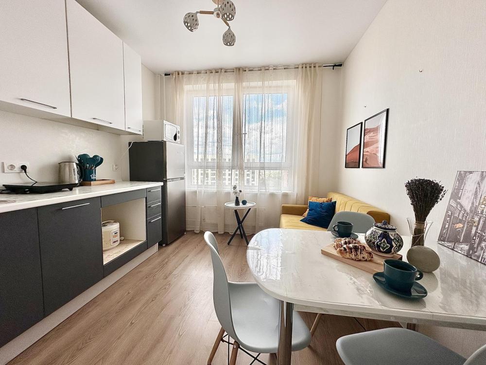 Квартира оборудована всем необходимым: - Вместимость до 4 гостей (двуспальная кровать+ раскладной диван) - Полотенце, тапочки, зубной набор, шампунь, гель для душа - Санузел совмещённый, ванна, стиральная машина, фен, утюг - Полноценная кухня (электроплита, холодильник, микроволновка, чайник) - Высокоскоростной Wi-Fi и ТВ