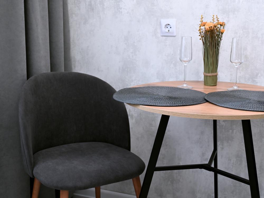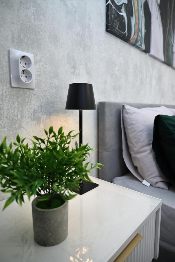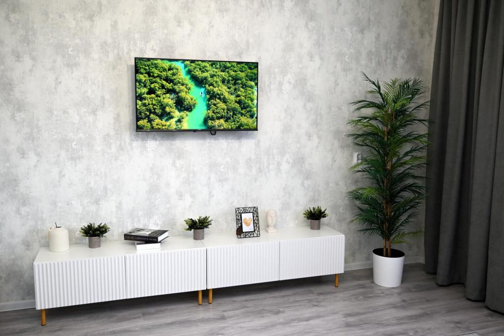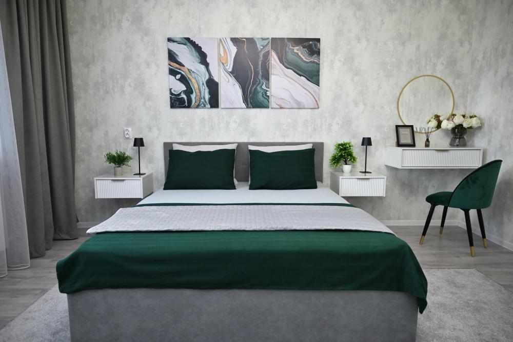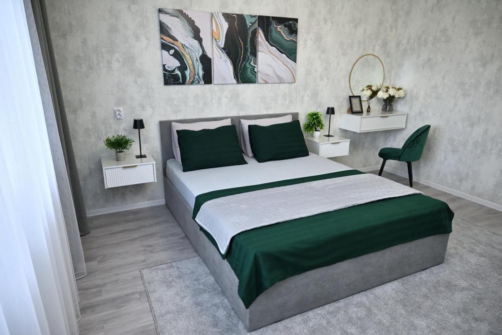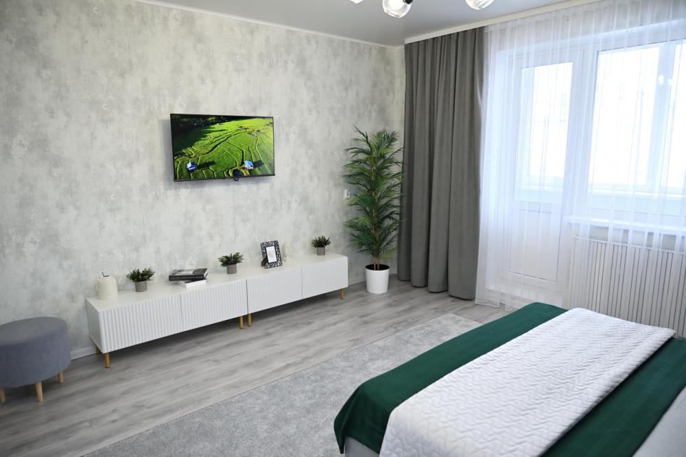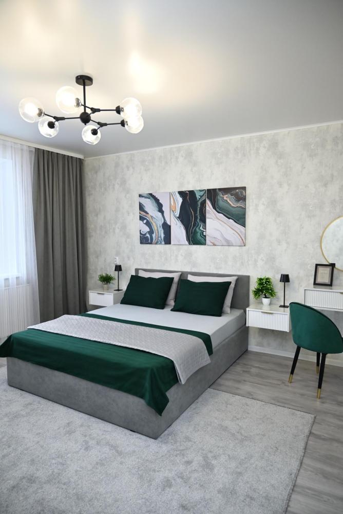 Двуспальная кровать, современная мебель. Телевизор с функцией Smart TV и бесплатный Wi-Fi, кондиционер. Туалетный столик с зеркалом. Оборудованная кухня: холодильник, печь СВЧ, электрочайник, посуда, приборы, стиральная машинка, чай, кофе, сахар. Чистое постельное белье и полотенца.