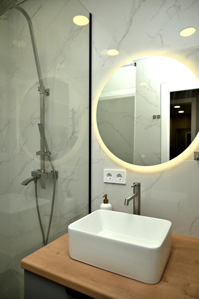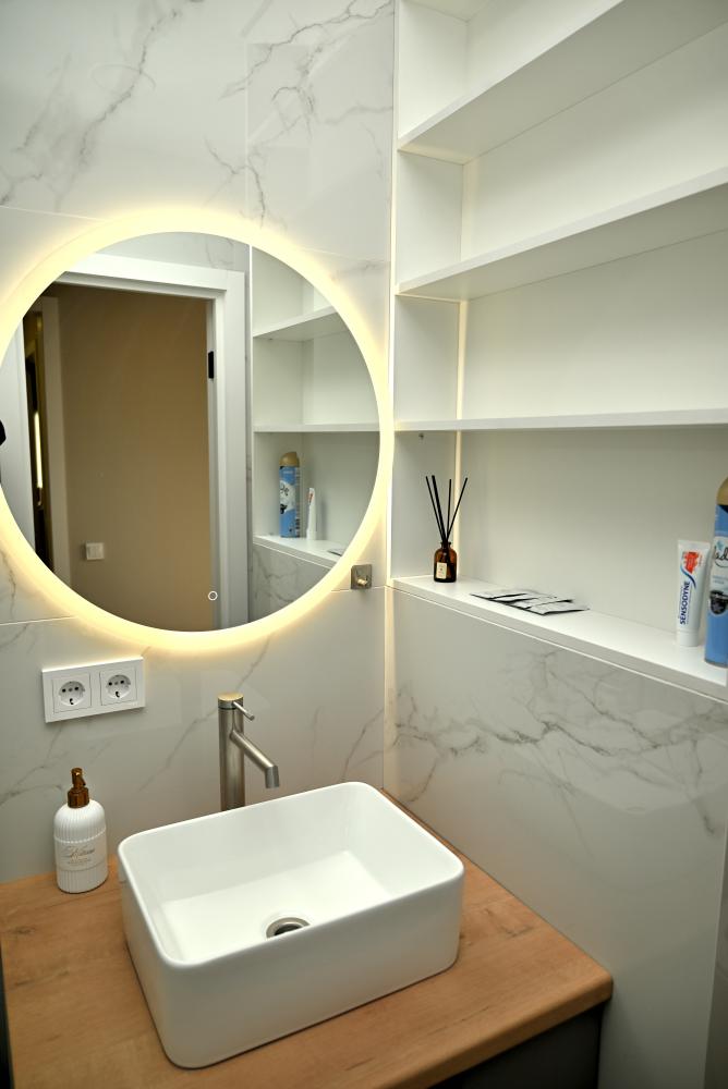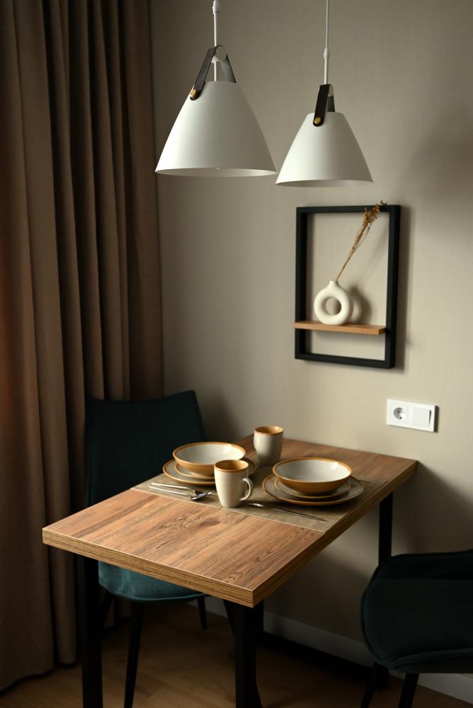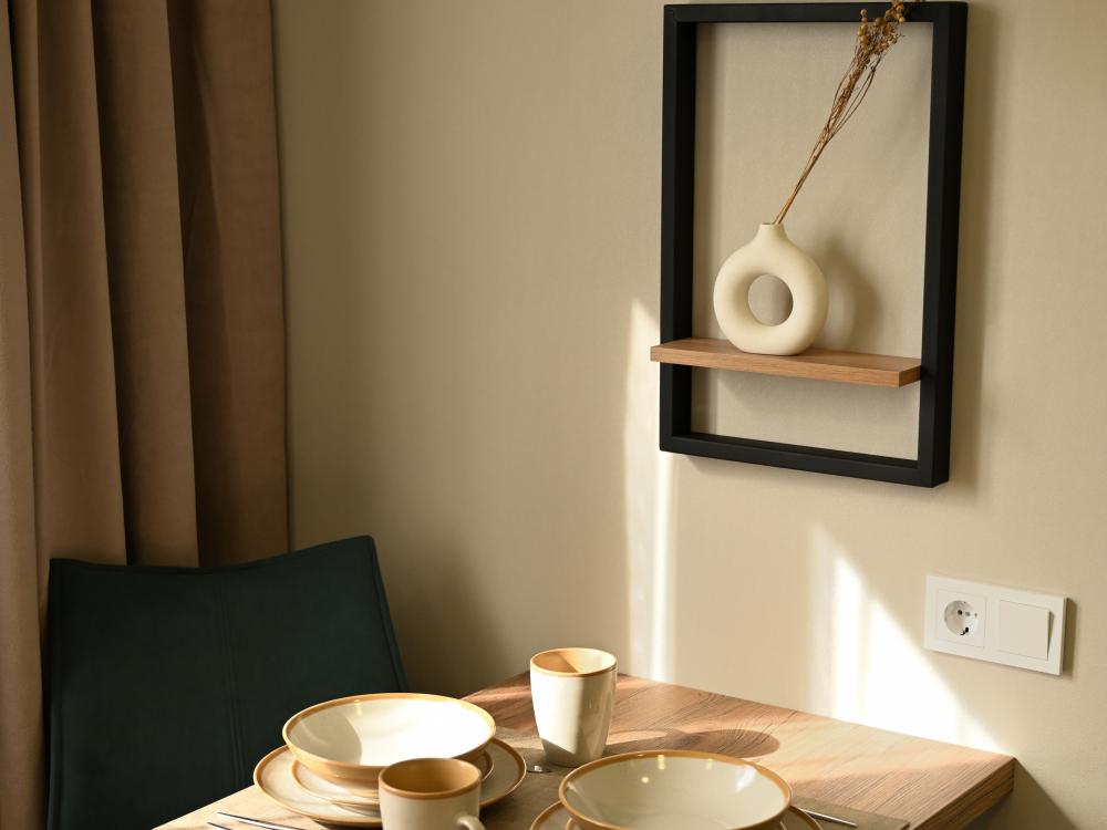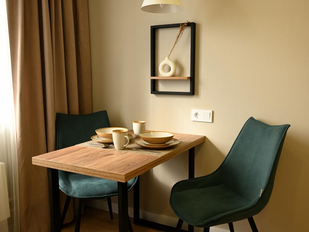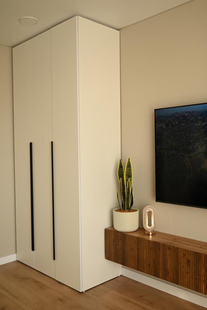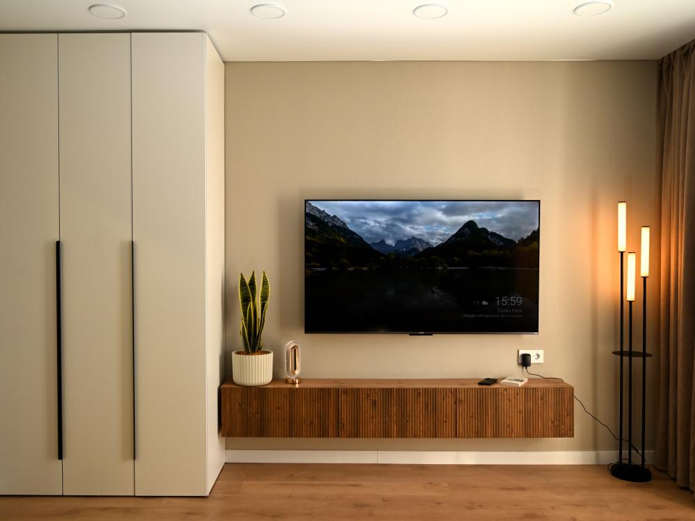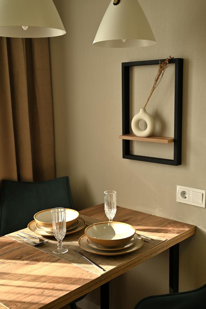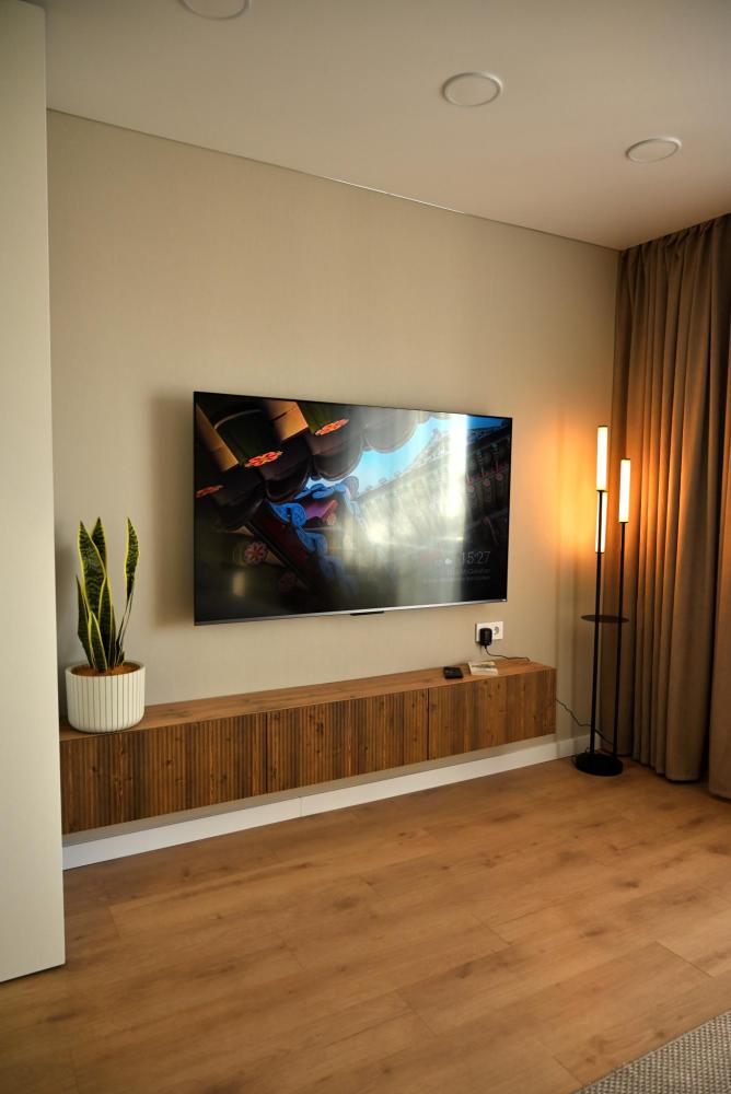Двуспальная кровать, современная мебель. Телевизор с функцией Smart TV и бесплатный Wi-Fi, кондиционер. Туалетный столик с зеркалом. Оборудованная кухня: холодильник, печь СВЧ, электрочайник, посуда, приборы, стиральная машинка, чай, кофе, сахар. Чистое постельное белье и полотенца.