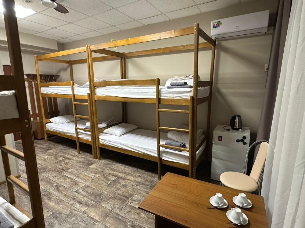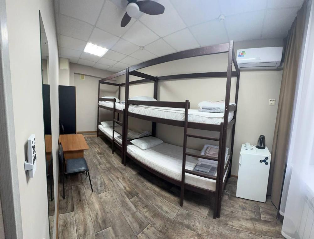 Комплектация номера: односпальная кровать (3 шт.), прихожая, прикроватная тумба (3 шт.), журнальный столик, электрический чайник, телевизор, холодильник, стационарный телефон, набор посуды, ванная комната (душевая кабина, раковина, унитаз, водонагреватель). В стоимость номера входят:мыло, полотенце, Wi-Fi.