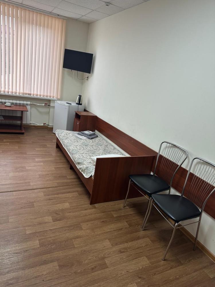 Комплектация номера: односпальная кровать (2 шт.), прихожая, прикроватная тумба (2 шт.), журнальный столик, электрический чайник, телевизор, холодильник, стационарный телефон, набор посуды, ванная комната (душевая, раковина, унитаз, водонагреватель). В стоимость номера входят: мыло, полотенце, Wi-Fi.