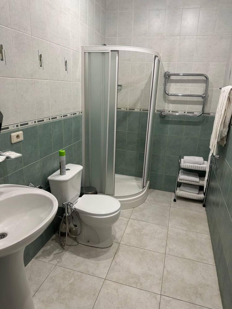 Комплектация номера: двуспальная кровать, прихожая, прикроватная тумба, журнальный столик, кресло (2 шт.), телевизор, холодильник, чайник, стационарный телефон, набор посуды, ванная комната (душевая кабина, раковина, унитаз), кондиционер. Окно в номере выходит во внутренний двор Гостиничного комплекса.