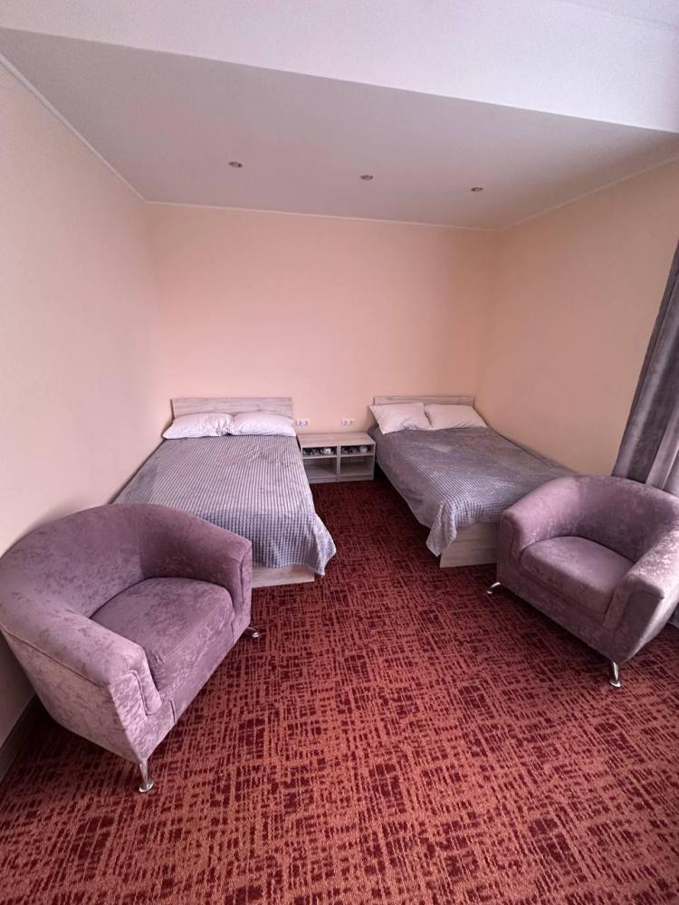 В номере: две полутороспальные кровати, кондиционер, телевизор, чайник, тумба, кресла, ванная комната. Номер рассчитан от 2х до 4х гостей.
