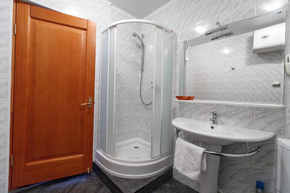 В номере: двуспальная кровать, прикроватная тумба, рабочий стол, стул, подставка под багаж, зеркало , вешалка для верхней одежды, гардероб, кабельное ТВ, доступ в Интернет Wi-Fi (бесплатно), кондиционер, холодильник, чайная станция (чайник, чайный набор, чай, сахар, шоколад). Санузел с душевой кабиной, феном, мини-набором для ванной, тапочки.